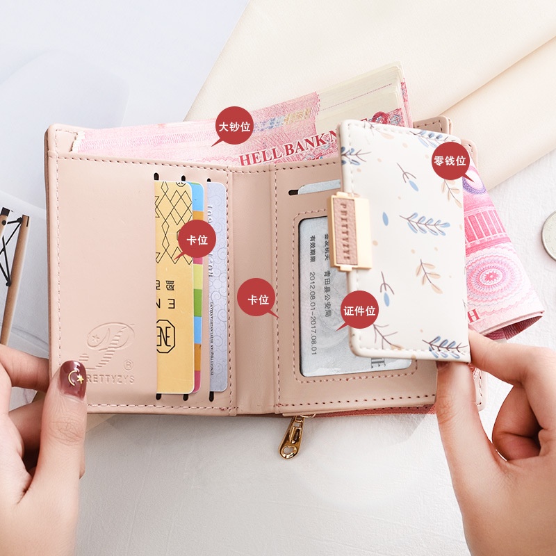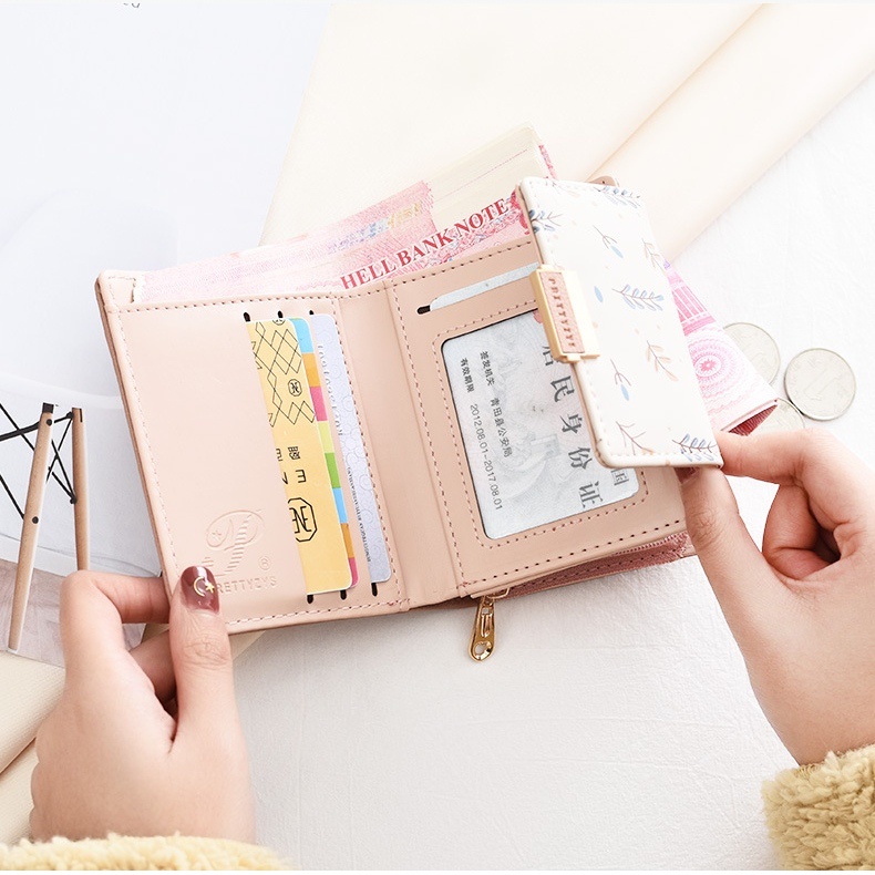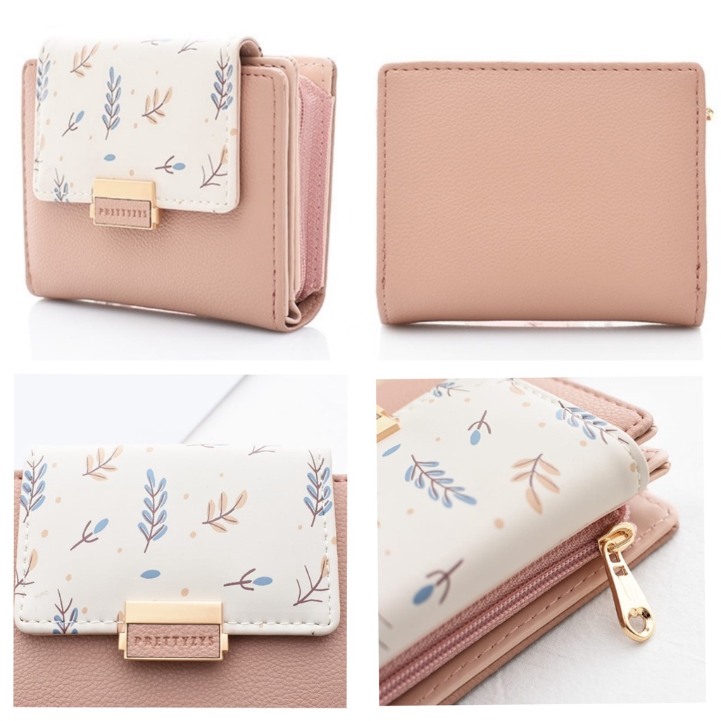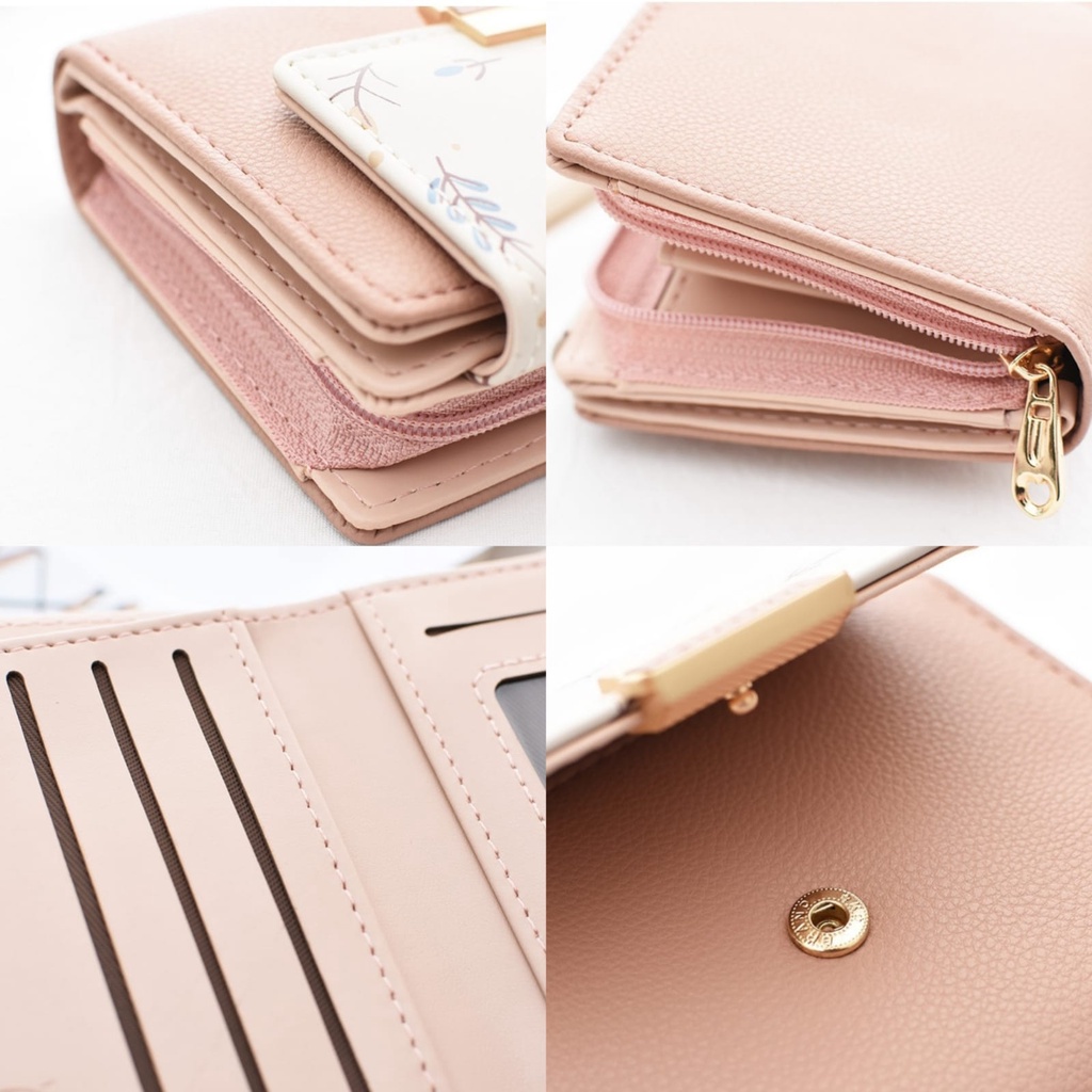 DOMPET LIPAT WANITA PRETTYZYS ORI IMPORT KULIT PINK PONAMI WA513P3 KOREA LUCU KECIL PREMIUM SLOT KARTU