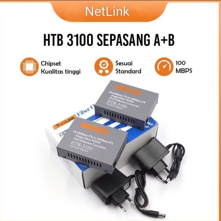 NetLink HTB-3100 A B Fiber RJ45 1 Pasang 25KM Optical Media Converter