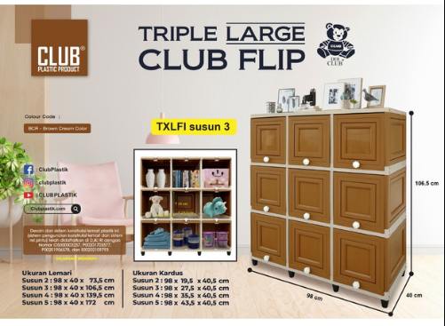 SH - Club Lemari plastik triple flip 3 susun meja TV Rotan Buffet TV Warna Warni 9 kotak
