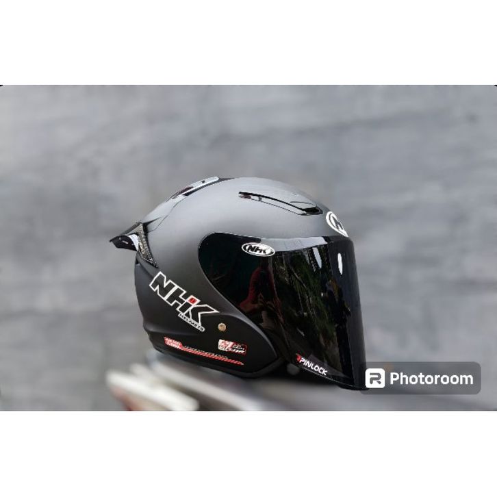 HELM NHK R1 SOLID BLACK DOFF / HELM NHK HALF FACE / HELM NHK DEWASA PAKET GANTENG VISOR IRIDIUM / HELM NHK ORIGINAL