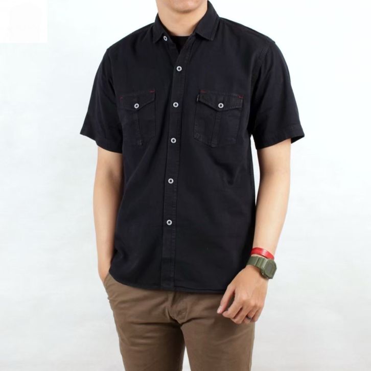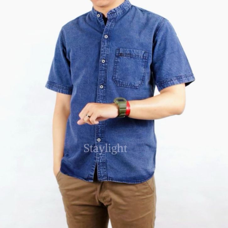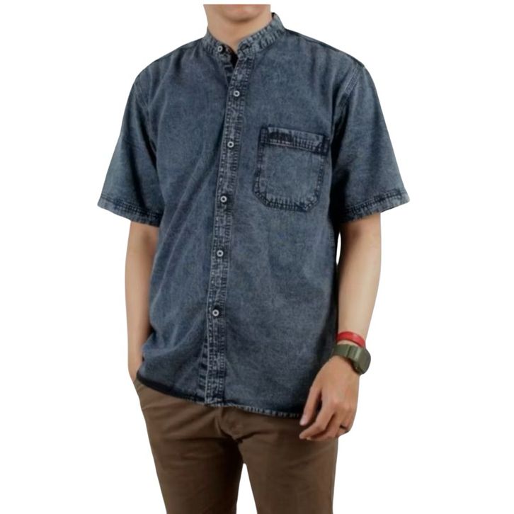 KEMEJA JEANS PRIA DENIM SHANGHAI LENGAN PENDEK SNOW PRIA DEWASA M L XL XXL JUMBO SLIM FIT COWOK TERBARU