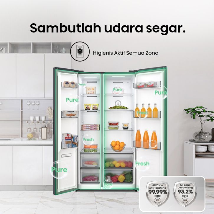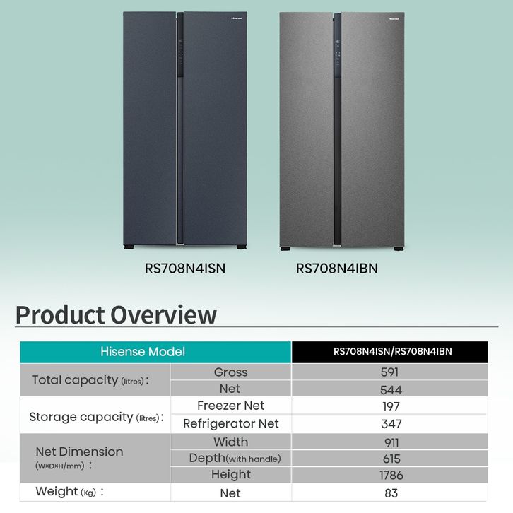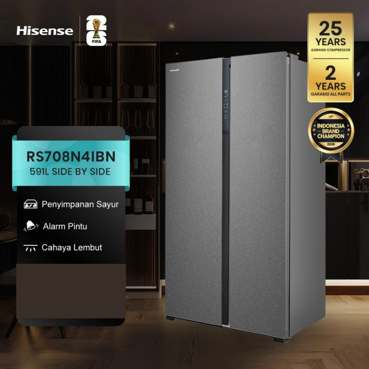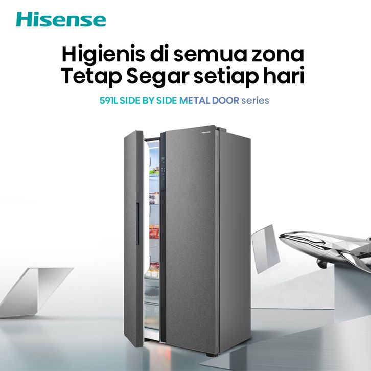 KULKAS HISENSE SIDE BY SIDE INVERTER REFRIGERATOR FREEZER JUMBO 591 LITER LEMARI ES TANPA BUNGA ES GARANSI RESMI MURAH