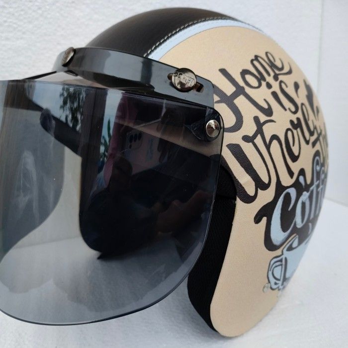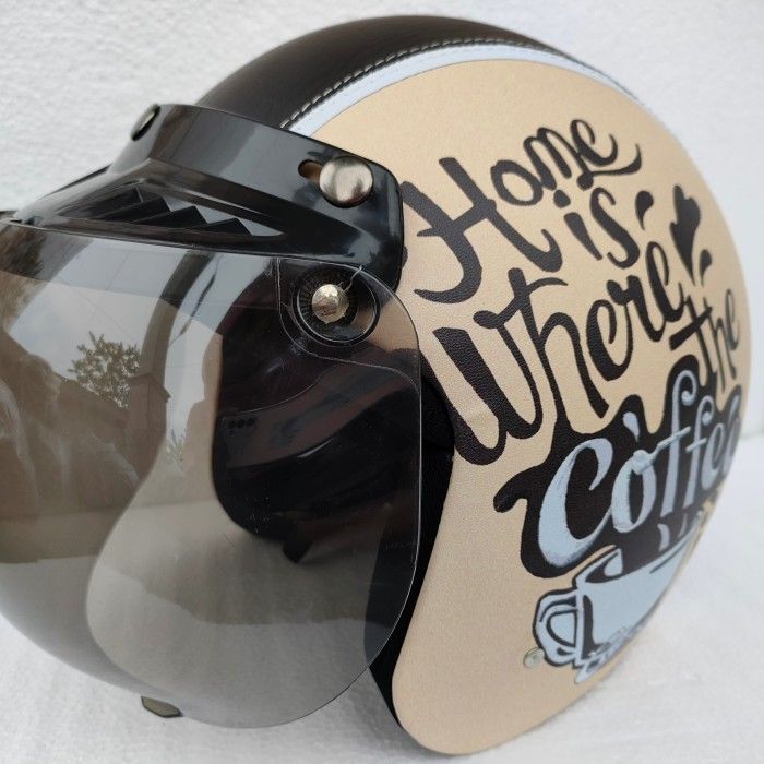 HELM BOGO JPN VARIASI GAMBAR FULL LEHER - coffee cembung All Size