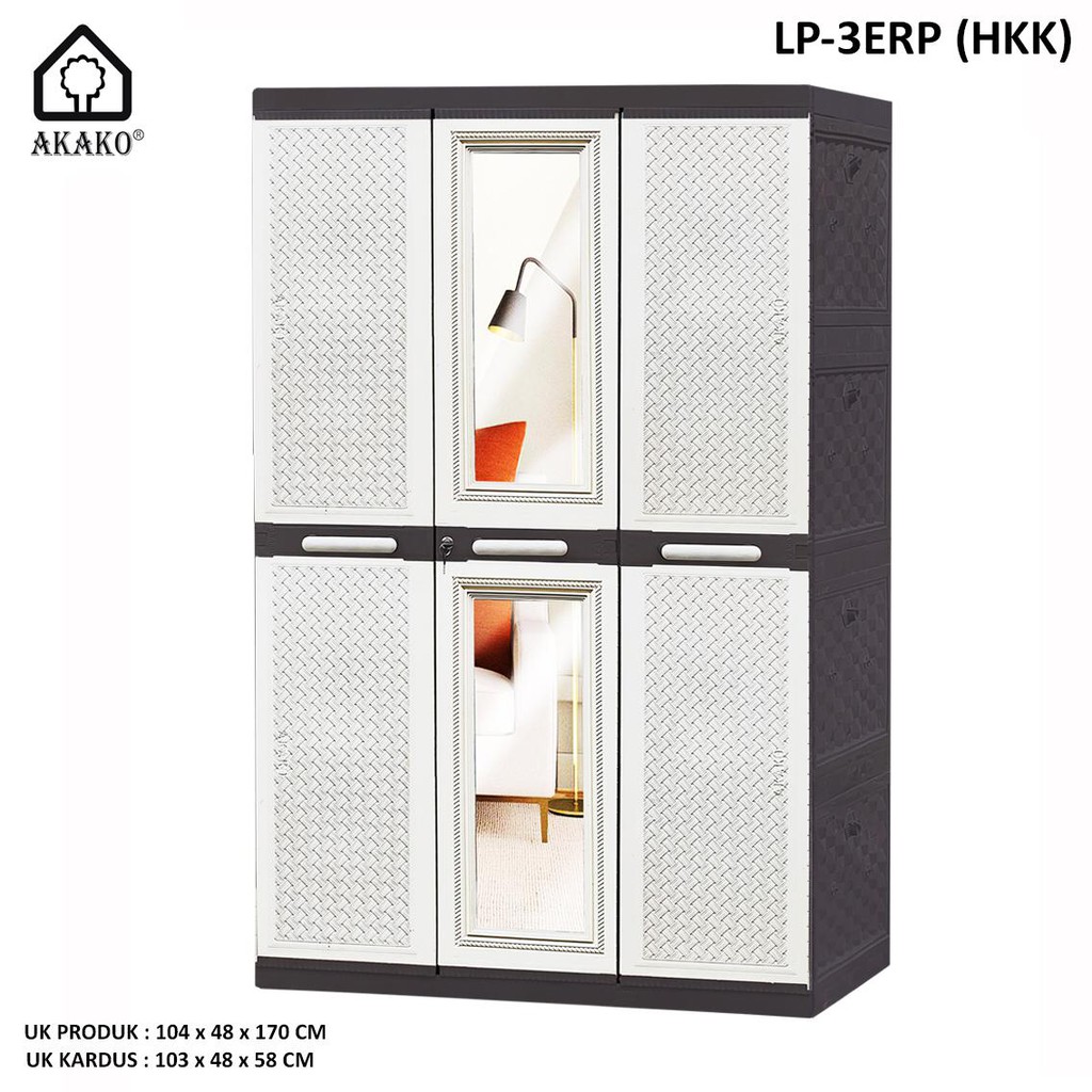 JTR - LEMARI PLASTIK 3 PINTU GANTUNGAN KACA AKAKO ELEGANT