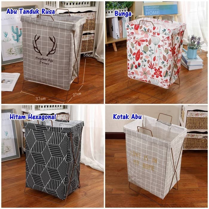 { FLASH SALE } Keranjang Baju Cucian Pakaian Kotor Laundry Basket dengan Rangka KB010