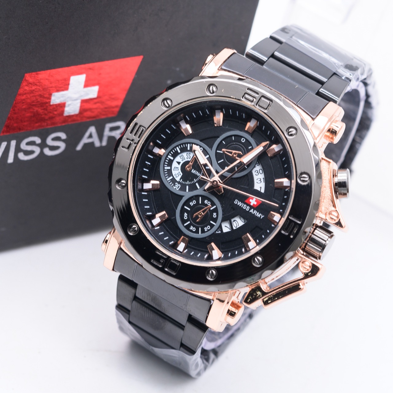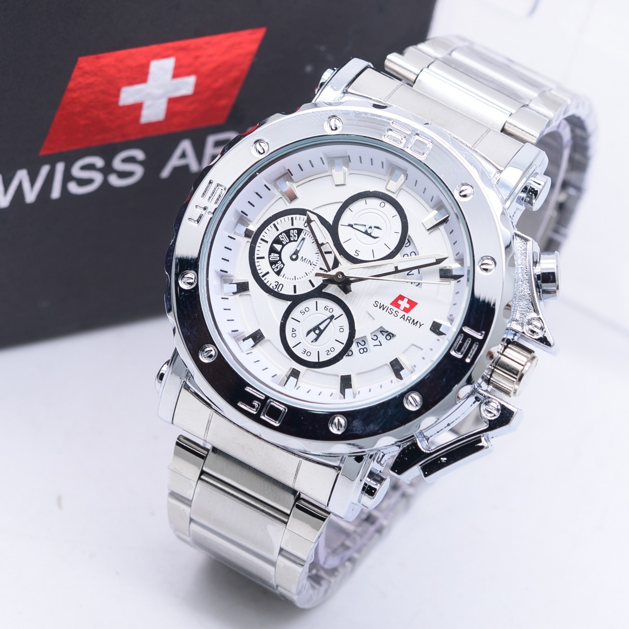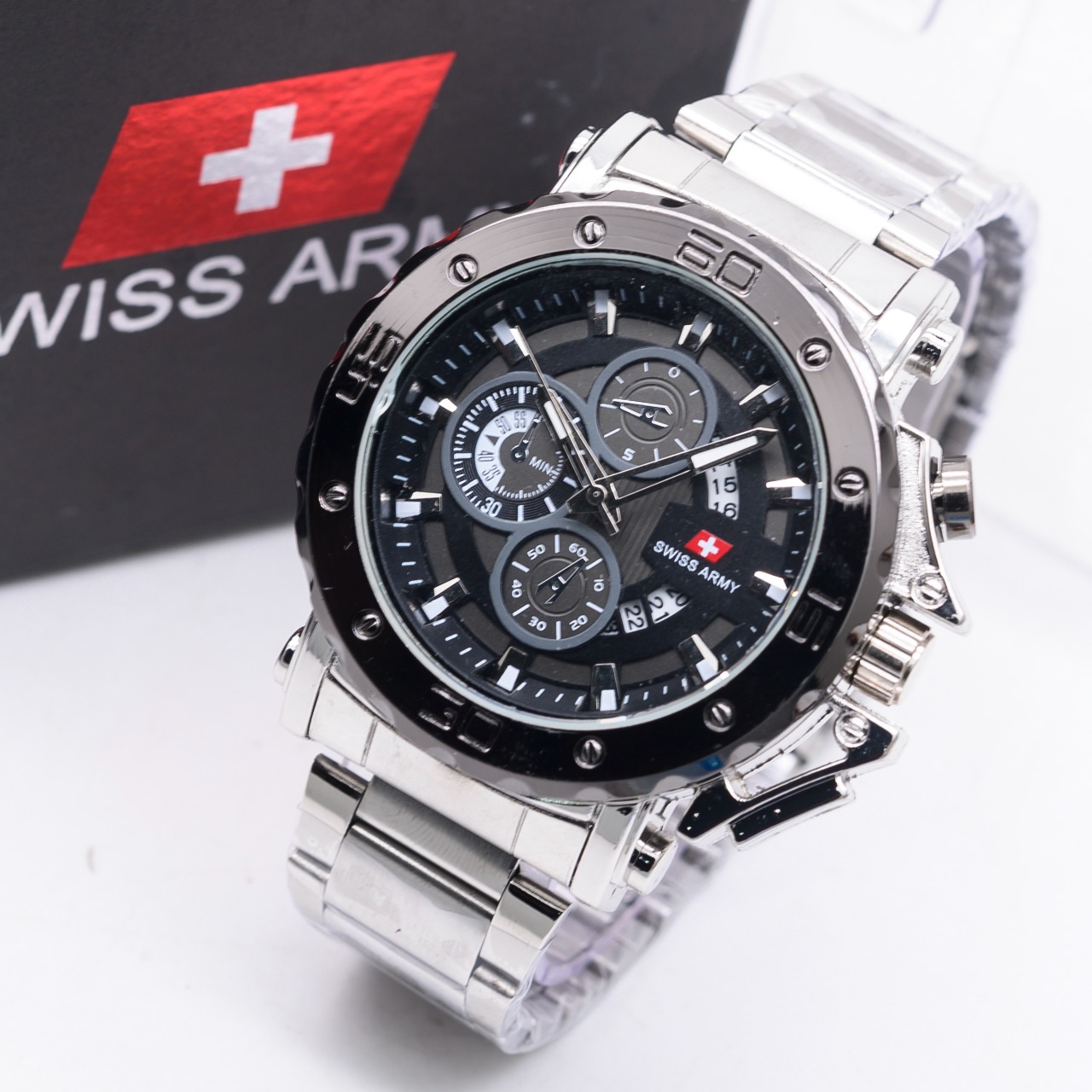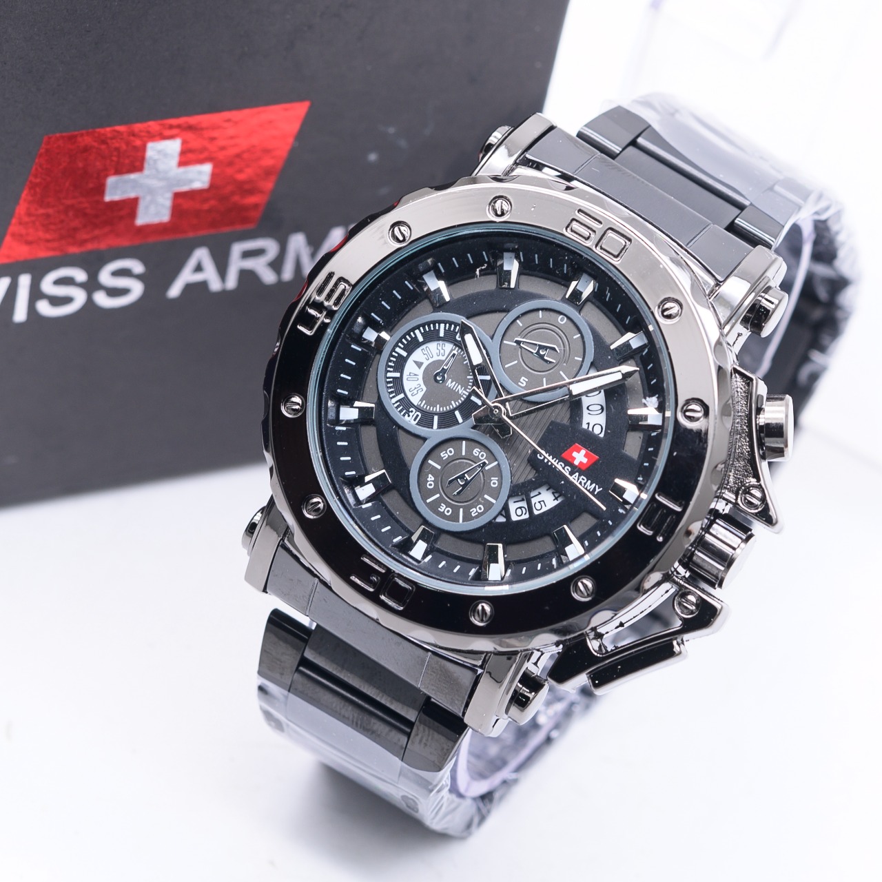 Terbaru - Jam Tangan Pria Swiss Army SA 6101HP Tanggal Aktif Tali Rantai Free Box & Baterai