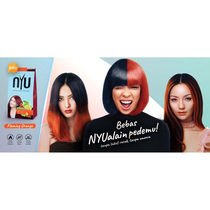 NYU CREME HAIR COLOUR Pewarna Rambut/ Cat Rambut Natural (TANPA AMONIA) Black Brown Blue Bleaching Red Color