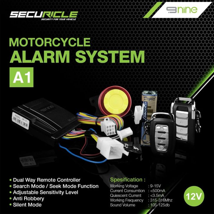 ALARM UNIVERSAL MOTOR ANTI MALING ORIGINAL 9NINE LUMINOS A1 + REMOT