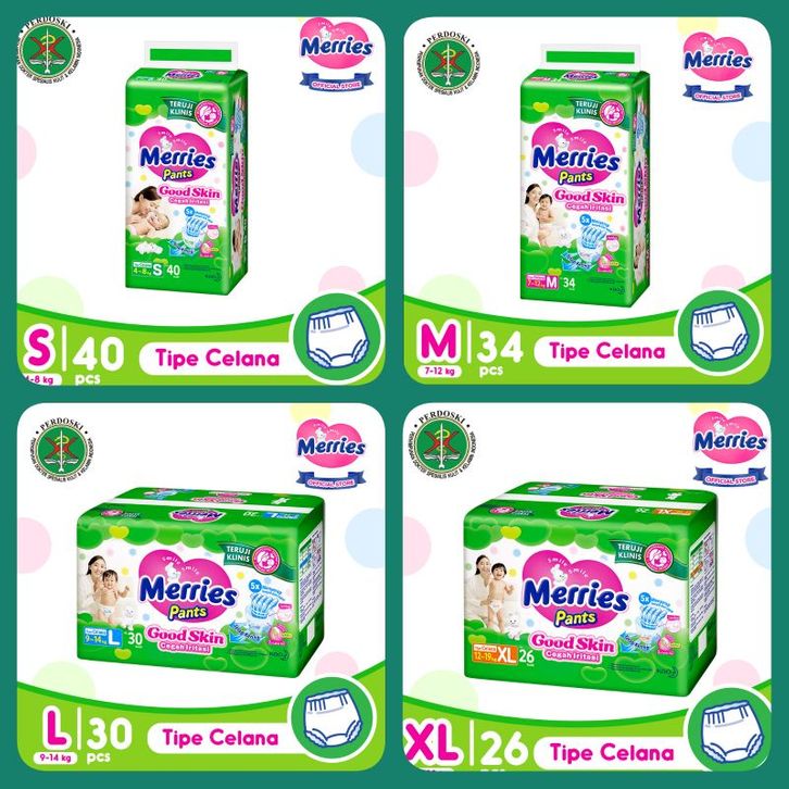 Merries Pants Good Skin M34+2 /L30+2/XL26 - Popok Bayi Merries Tipe Celana