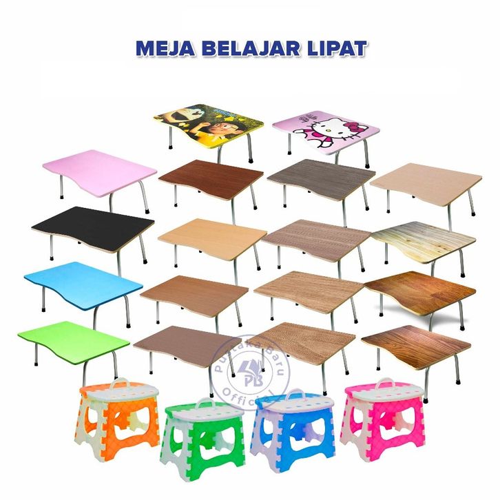 Meja belajar lipat / meja kursi lipat portable / meja laptop serbaguna bermacam motif kayu dan kursi lipat / pb edukasi