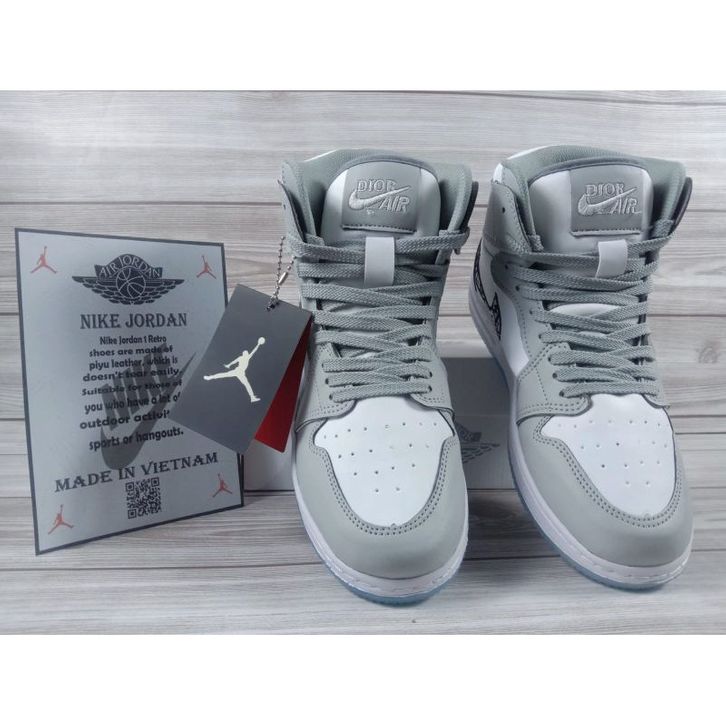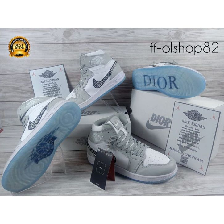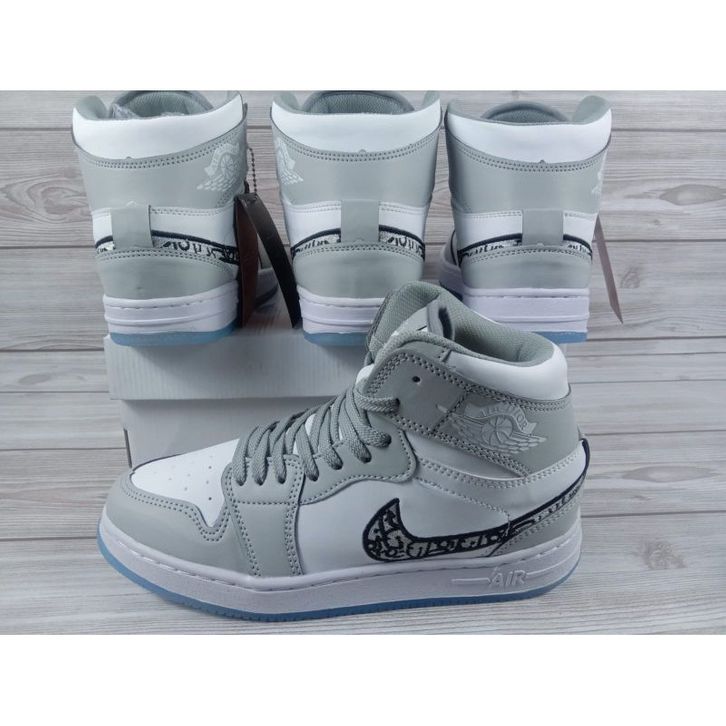 Sepatu Jordan X Dior High Low Gray White Original Premium Pria Wanita Sneakers Dior Boot Shoes Terlaris (GRATIS ONGKIR)