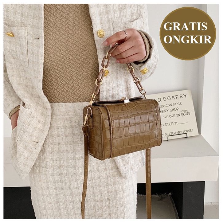 TAS IMPORT SELEMPANG CROCO PERSEGI BAG WANITA CEWEK HANDBAG RANTAI KONDANGAN SHOULDER LB 378