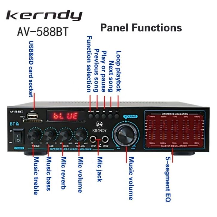 FREE ONGKIR Bluetooth EQ Audio Amplifier av588bt Karaok Home Theater 1000W kerndy amplifier AV-588BT