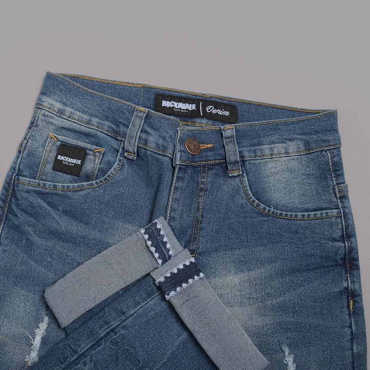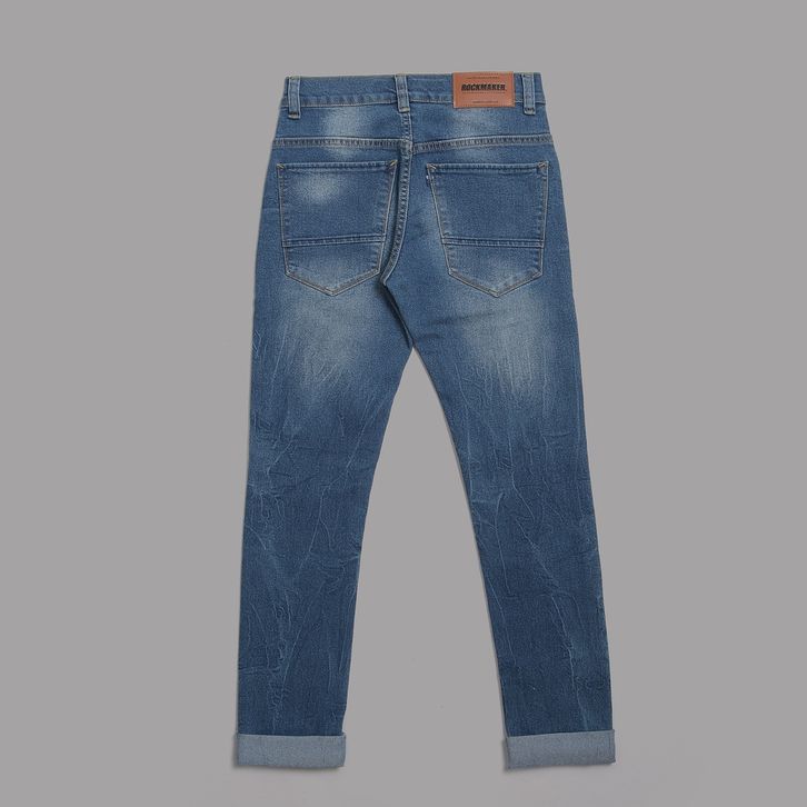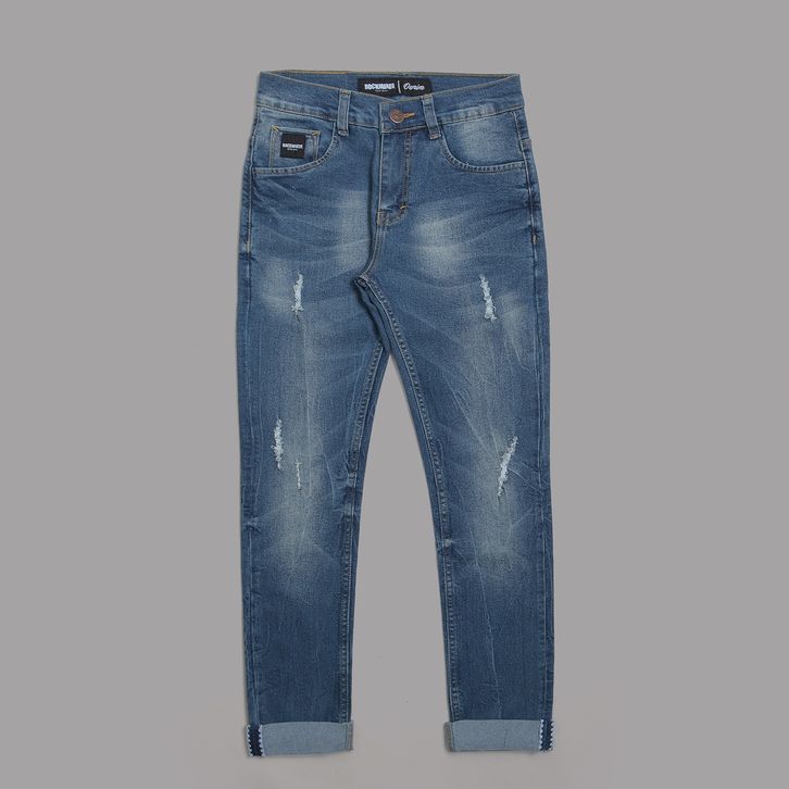 Celana Jeans Cowok Panjang Denim Selvedge Rockmaker Light Blue Destroy