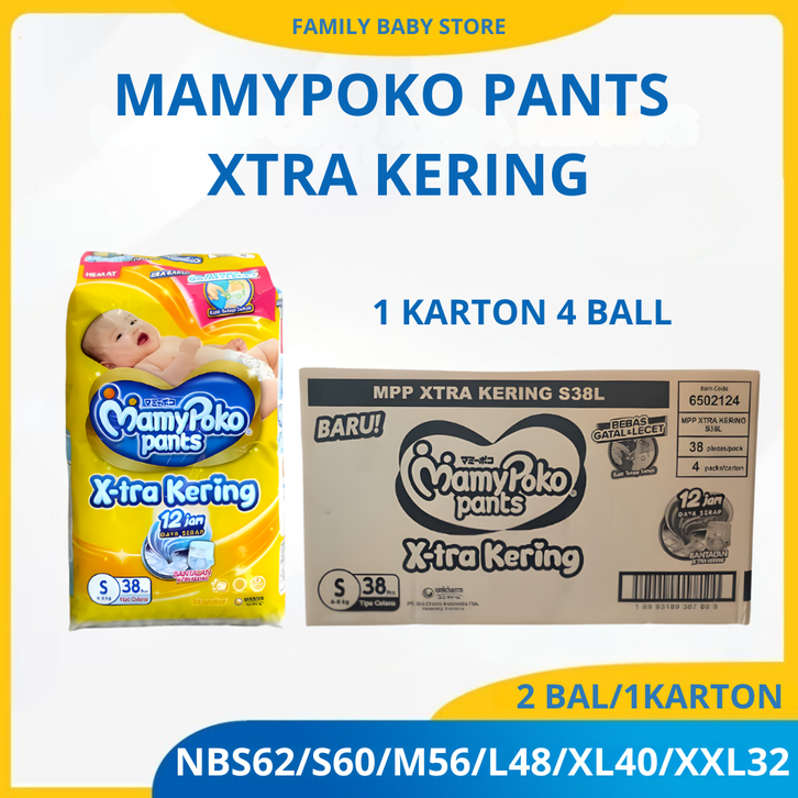MAMYPOKO XTRA KERING 1 KARTON DUS UKURAN S 38 M 32 L 28 XL 26 XXL 24 NBS 44 POPOK BAYI PAMPERS PEMPES BARU LAHIR MURAH