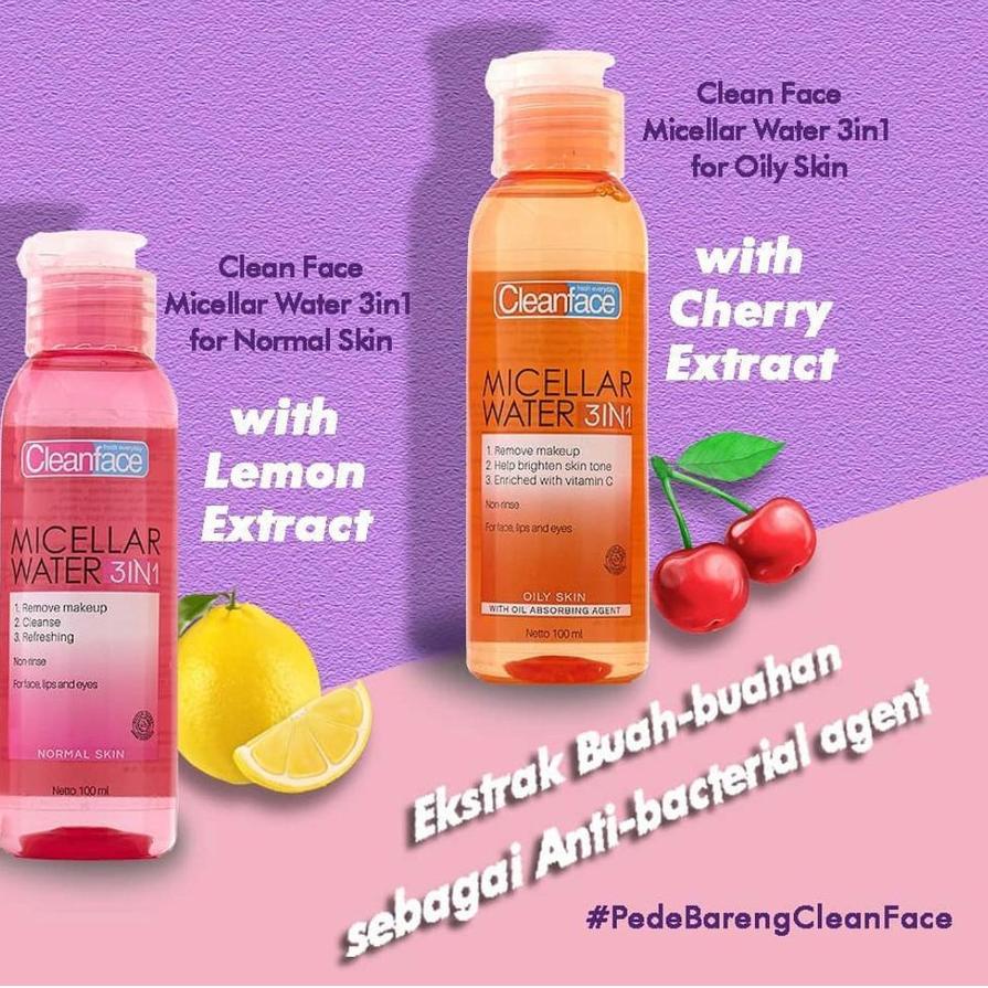FREE ONGKIR / Cleanface 3in1 Micellar Water Normal Skin - Oily Skin - Micellar Water - 100ml - 250ml - Purbasari