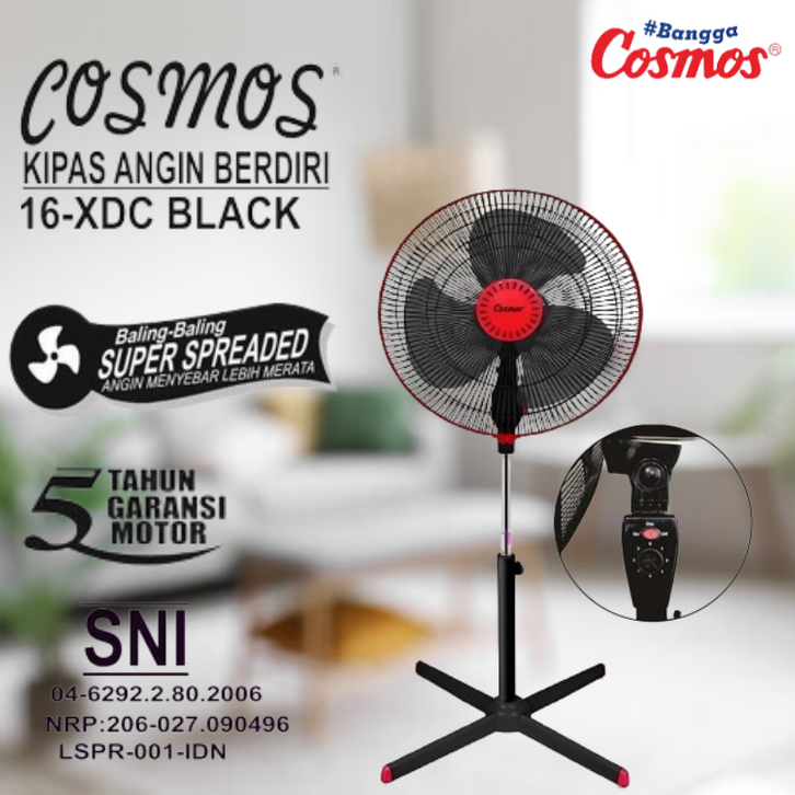 KIPAS ANGIN BERDIRI COSMOS 16 INCH 16XDC STAND FAN MEWAH TERBARU ORIGINAL BERKUALITAS MULTIFUNGSI GARANSI RESMI TERMURA
