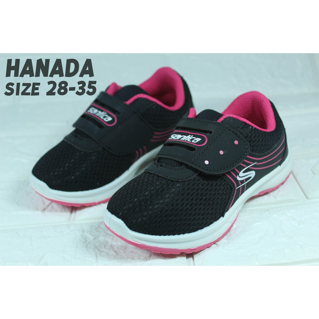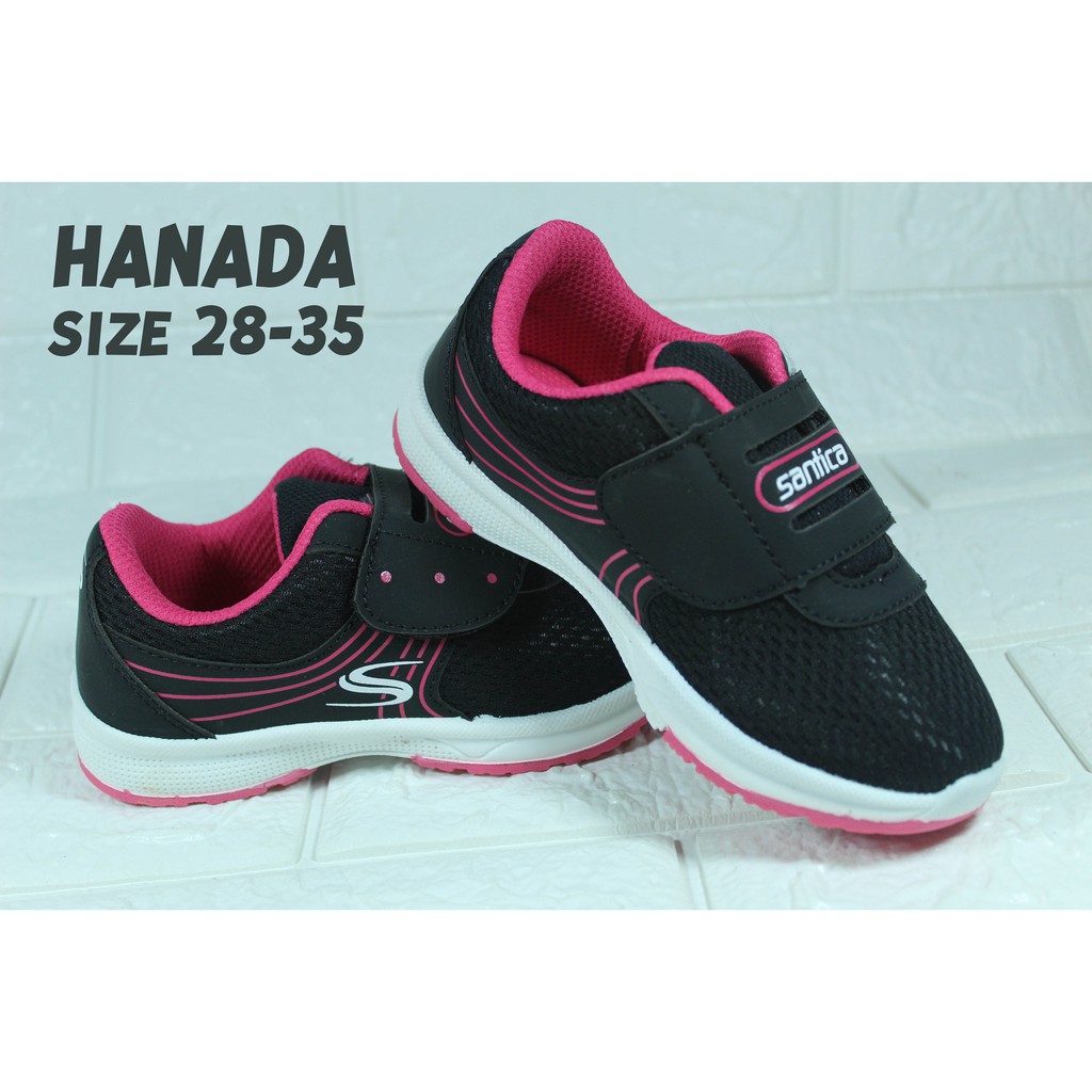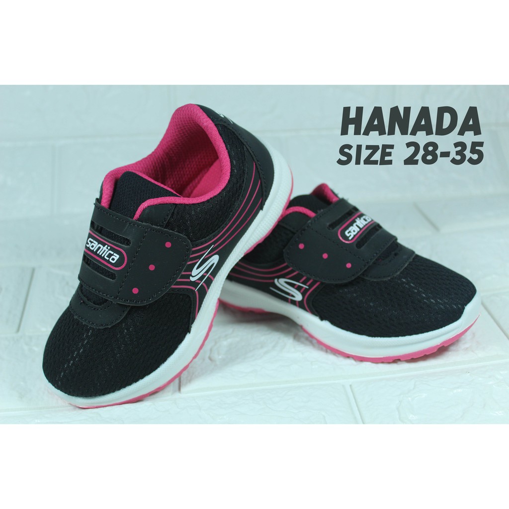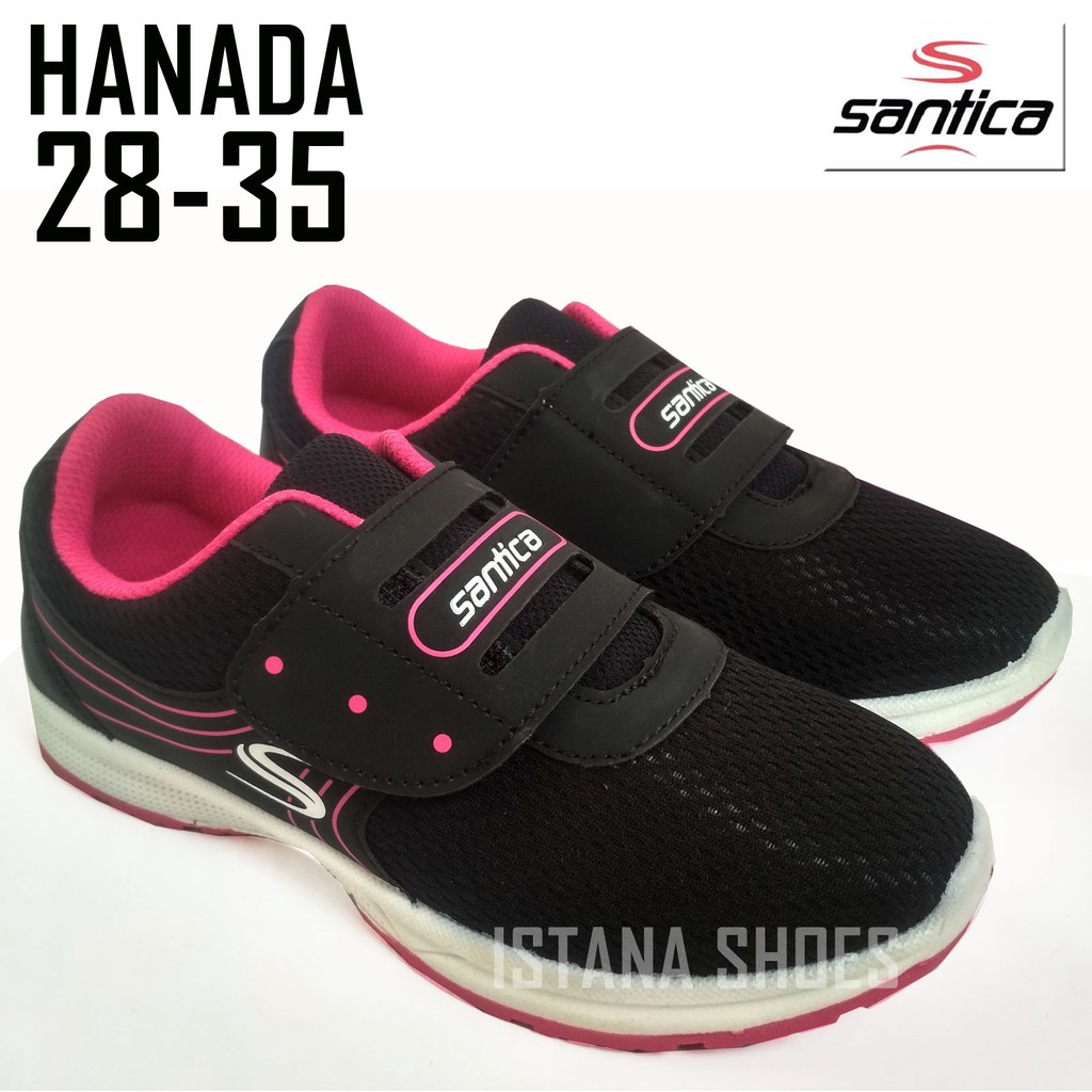 SEPATU SEKOLAH ANAK PEREMPUAN SANTICA HANADA HITAM PINK PAUD TK SD SMP KETS