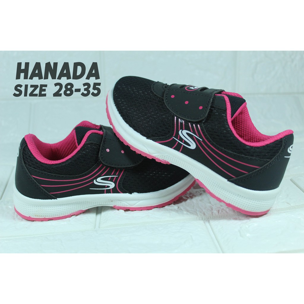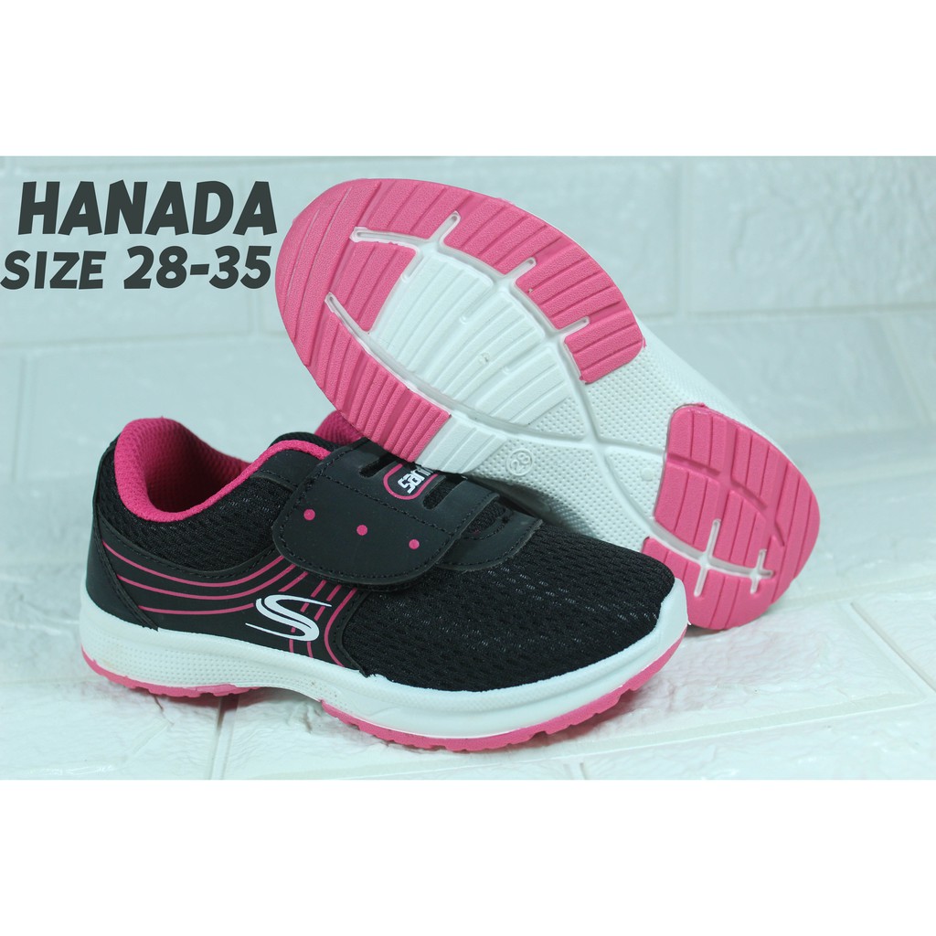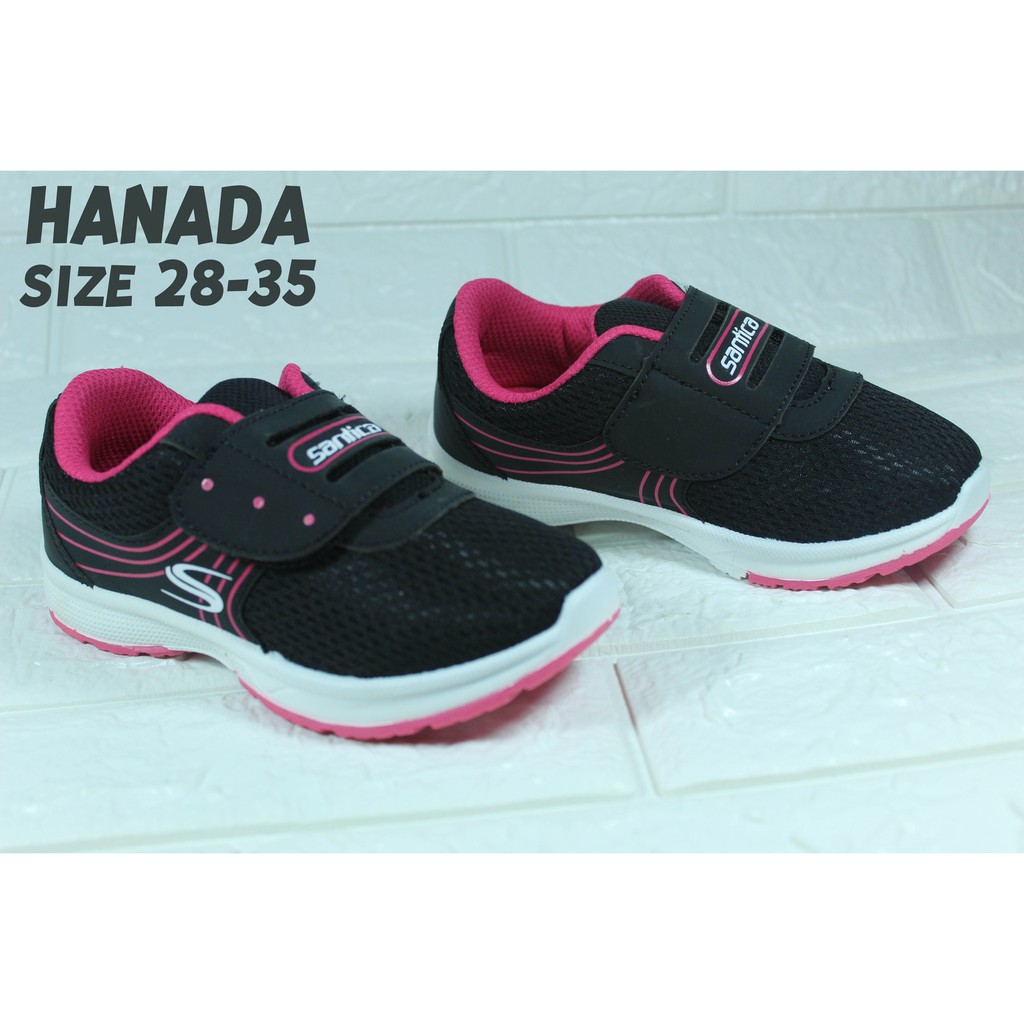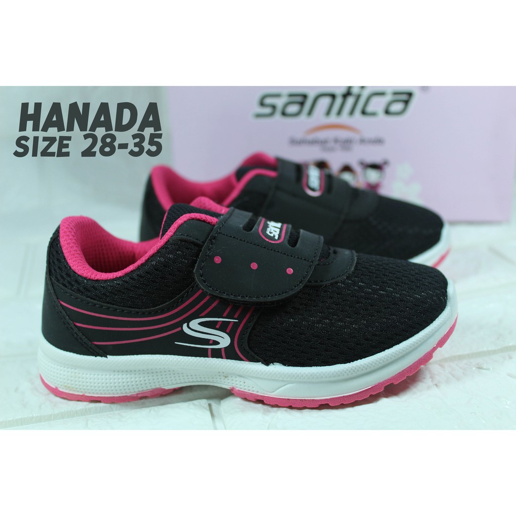 SEPATU SEKOLAH ANAK PEREMPUAN SANTICA HANADA HITAM PINK PAUD TK SD SMP KETS