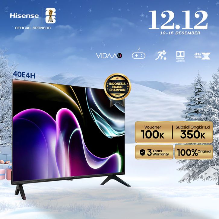 Hisense 40" HD Vidda Smart TV-Bezelless Design-Dolby Audio- Youtube/Netflix/Prime video-Casting 40E4H
