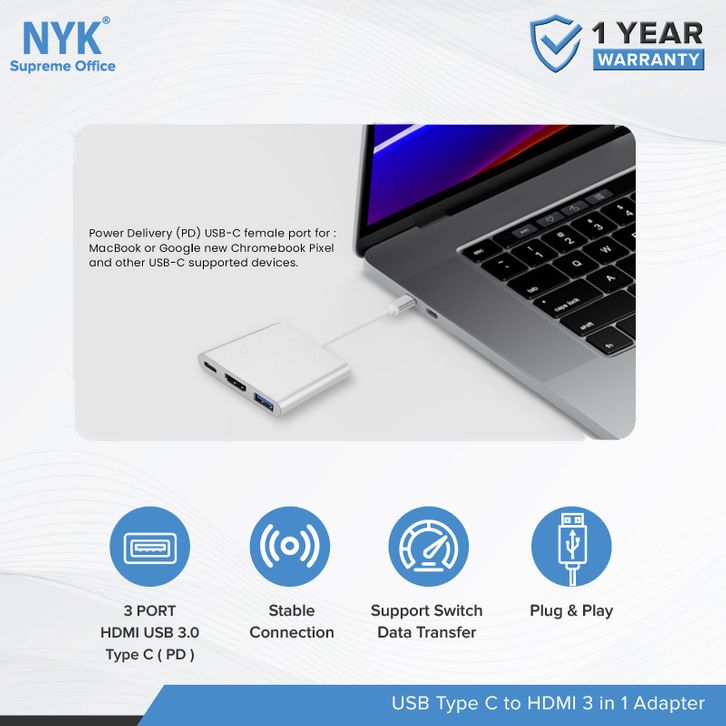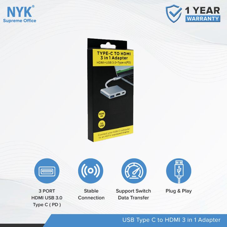 Converter 3 in 1 NYK USB 3.0 Type C to HDMI 4K