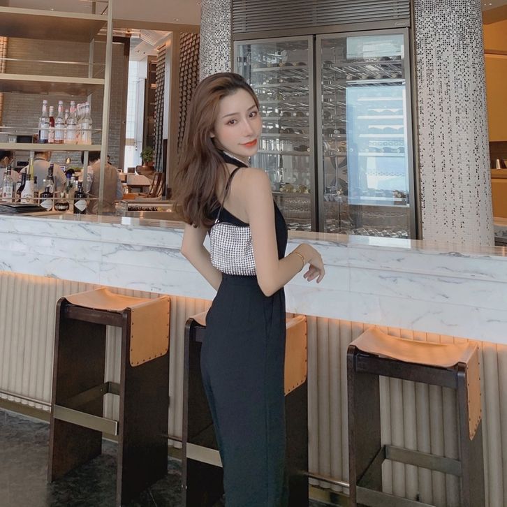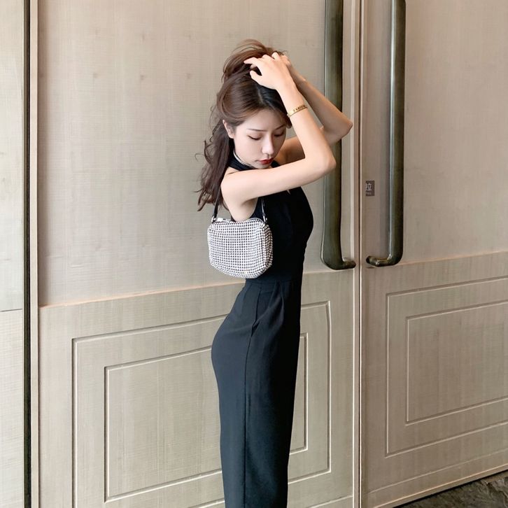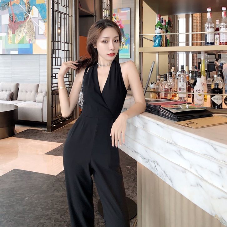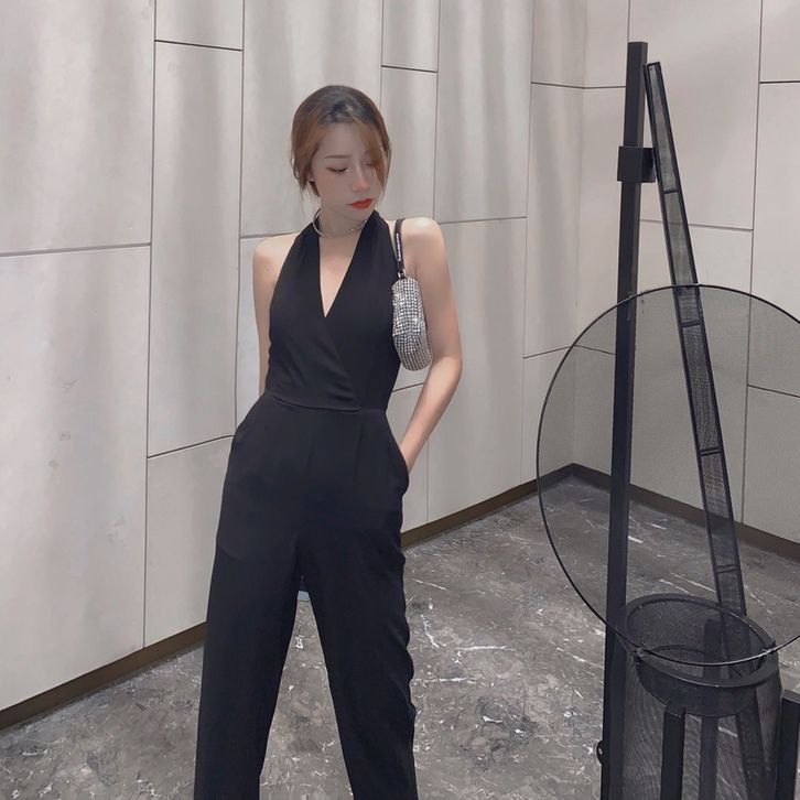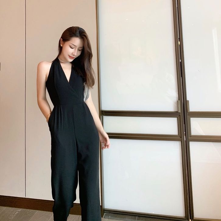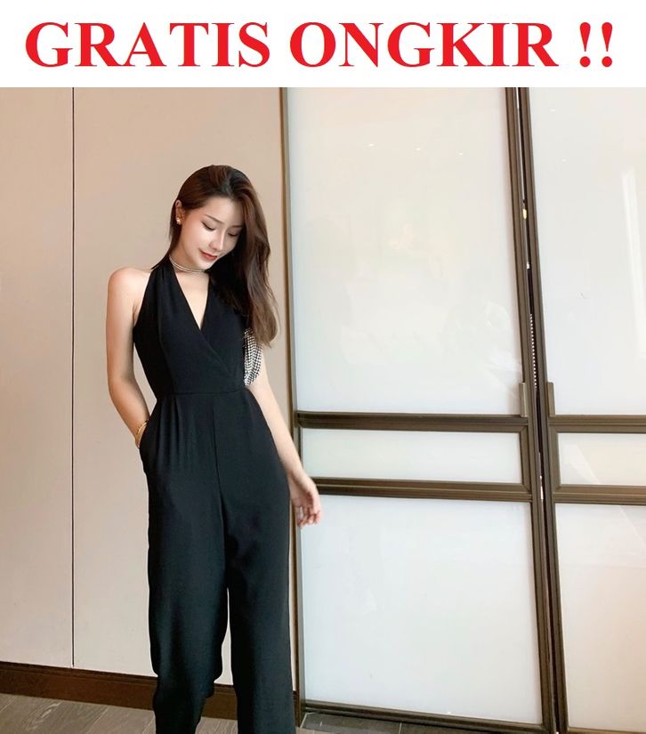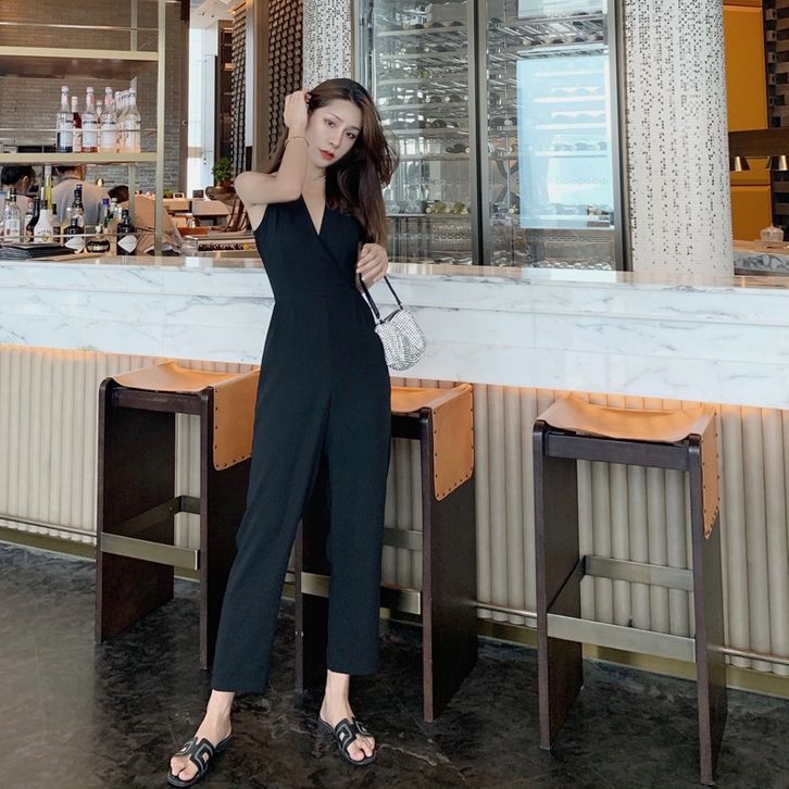 Korean Jumpsuit Black Sleeveless V-Neck Jumpsuit Hitam V Neck Tanpa Lengan 1288 (S/M/L)