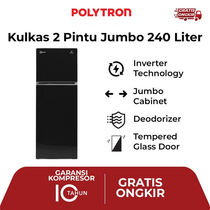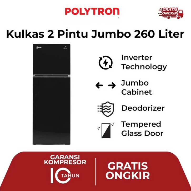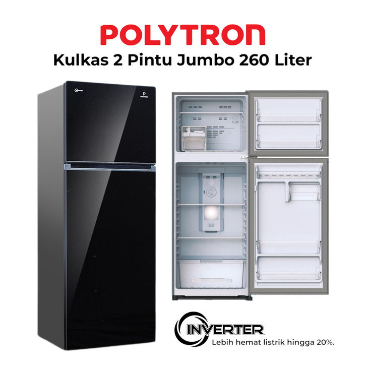 KULKAS POLYTRON BELLEZA 2 PINTU JUMBO INVERTER 260 240 220 LITER PRW 29VX LEMARI ES FREEZER BESAR TANPA BUNGA ES MURAH