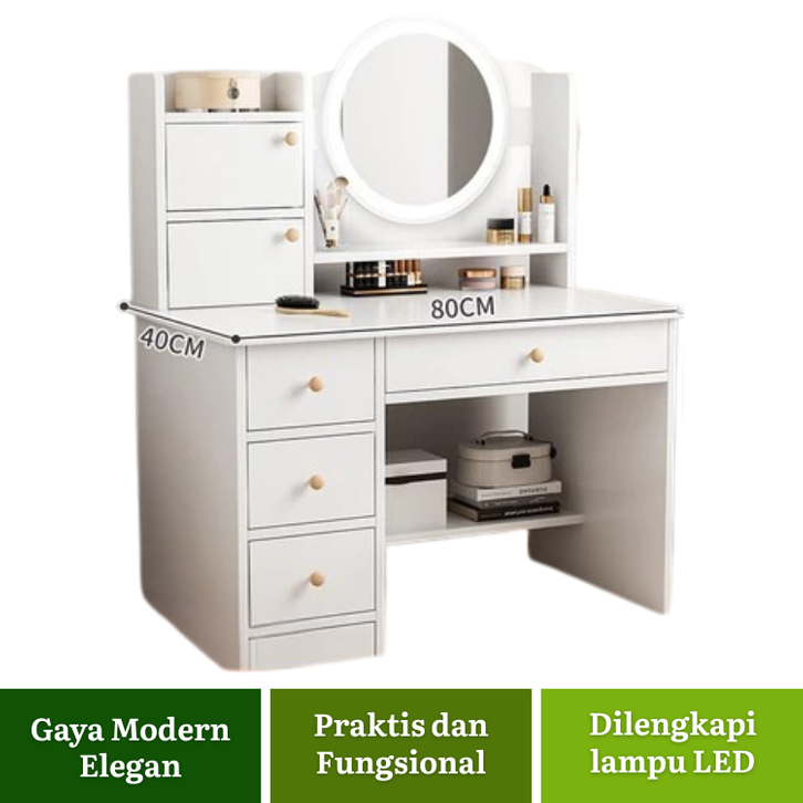 MEJA RIAS MINIMALIS MAKEUP BEST SELLER LAMPU LED OVAL KAYU PUTIH MODERN ELEGAN KAMAR TIDUR AESTHETIC MURAH