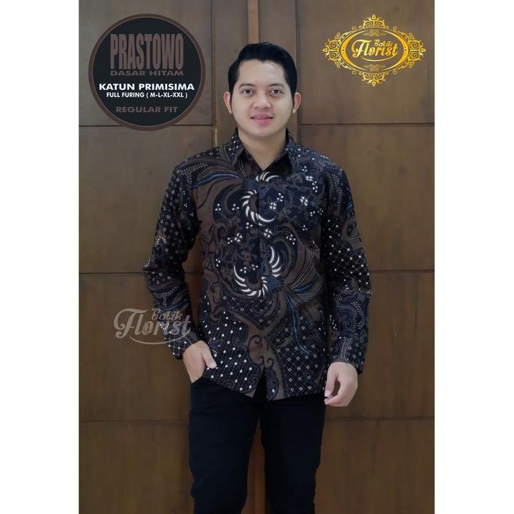 PRASTOWO HITAM FLORIST KEMEJA BAJU BATIK PRIA SOLO LENGAN PANJANG FULL FURING