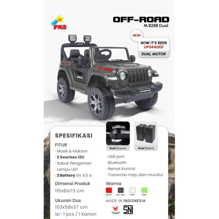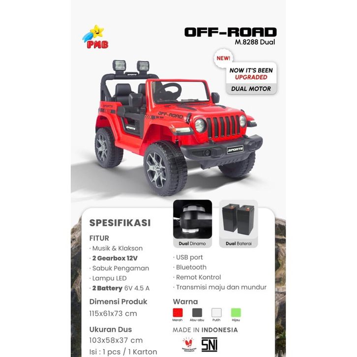 MOBIL AKI ANAK JUMBO PMB 8288 MOBIL AKI ANAK PMB JEEP RUBICON OFF ROAD MOBIL AKI ANAK REMOTE MOBIL AKI ANAK BISA DINAIKI