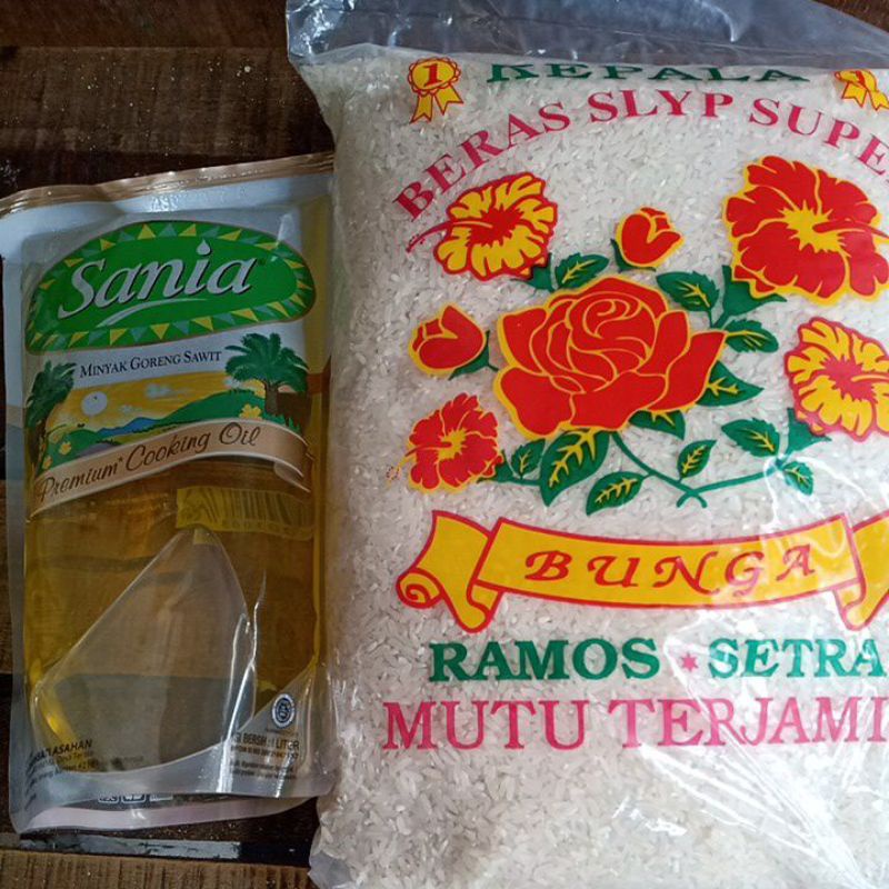 FREE ONGKIR-PAKET SEMBAKO BERAS 5 LITER &MINYAK GOREN 1LITER HALAL STOCK READY