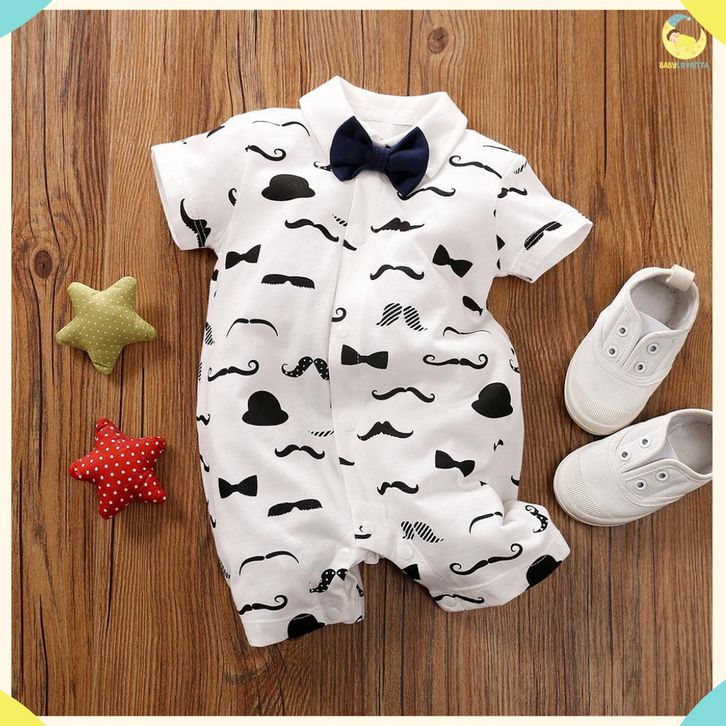 GRATIS ONGKIR BAYI LAKI LAKI JUMPER BAYI LENGAN PENDEK MOTIF KUMIS/ JUMPER BAYI MUSTACHE/BABYLOVANTA