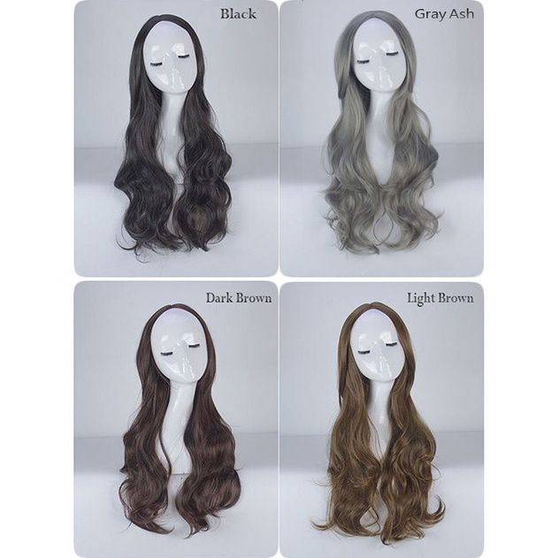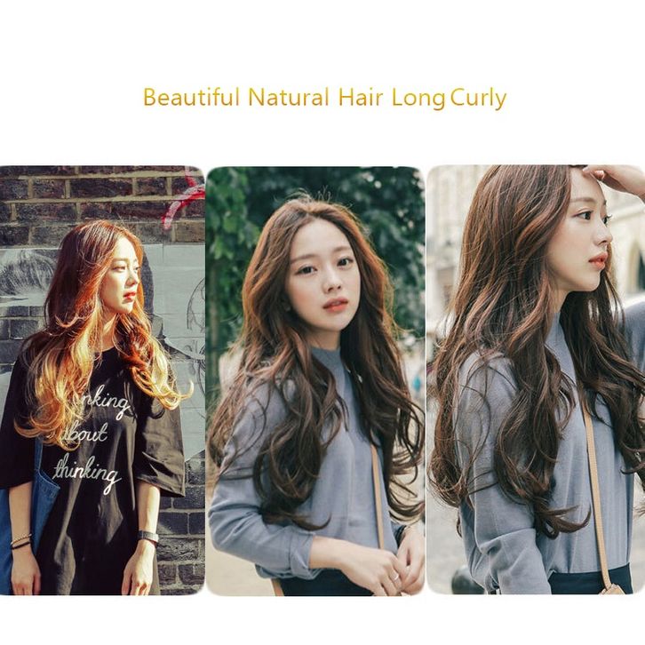 FREE ONGKIR WIG CEWEK PANJANG BERGELOMBANG TANPA PONI WARNA NATURAL RAMBUT PALSU CURLY HAIR