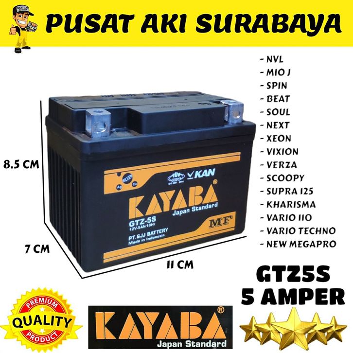 ACCU KAYABA GTZ5S AKI MF GTZ 5S 5 AMPER AKI KERING YAMAHA MIO J FINO BEAT STREET MIO M3 MIO GT SOUL
