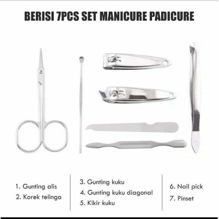 stainless manicure set 7 in 1 Stainless Stell Gunting Kuku Portable Tools Set Dengan Dompet