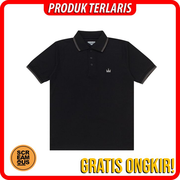 KAOS POLO SCREAMOUS CROWN LINE GREY BLACK - KAOS POLO PRIA - KAOS PRIA JUMBO POLOS CASUAL KEREN ORIGINAL