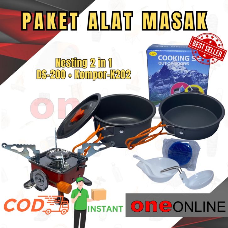 FREE ONGKIR Kmpr + Alat Masak Camping Cooking Set Kemping Panci Kotak Nesting Kemping DS200 K202