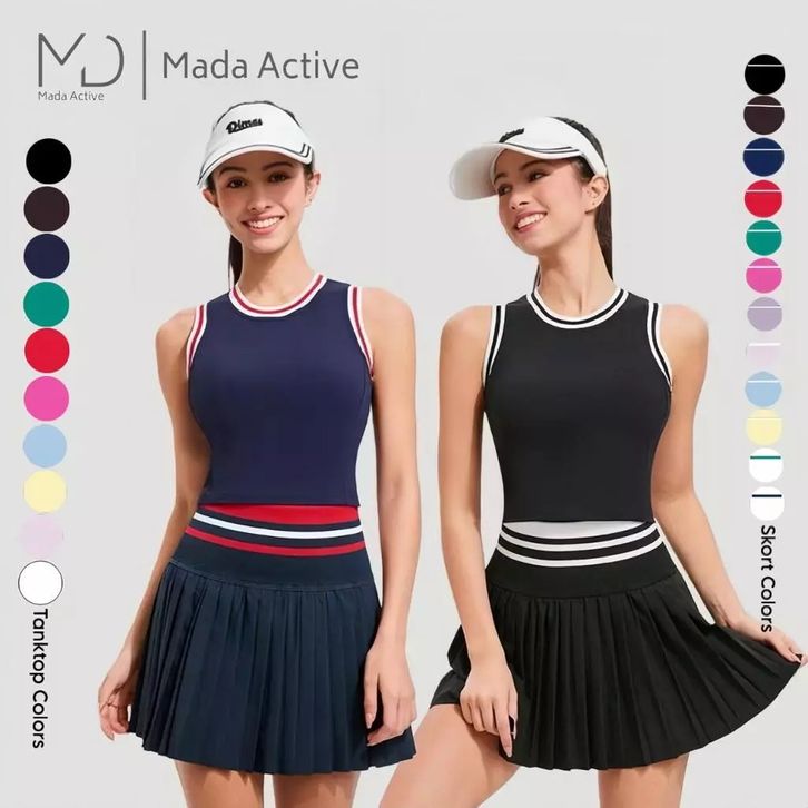 Padel Series Tanktop With Cup Bra Skort Set Tennis Padel Outfit Wanita Baju Olahraga Padel Baju Padel Premium