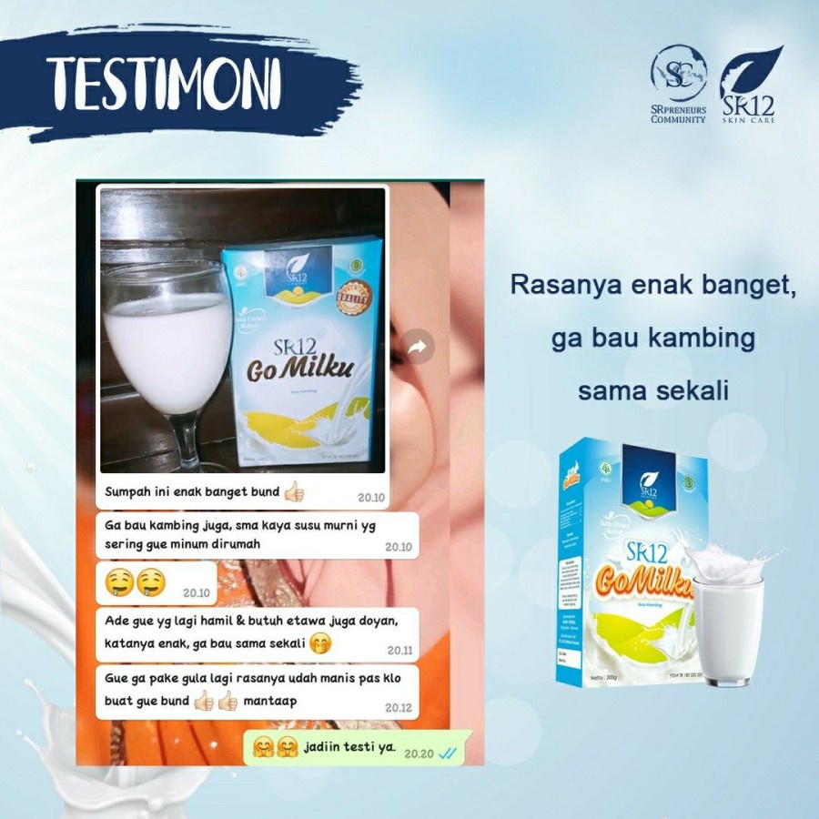 SUSU KAMBING SR12 ETAWA GOMILKU GO MILKU HALAL BPOM RASA ORIGINAL DAN COKLAT DARI SR 12