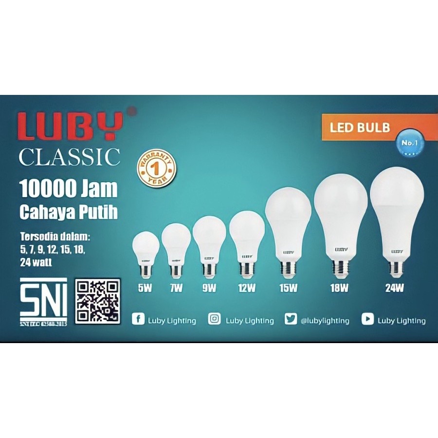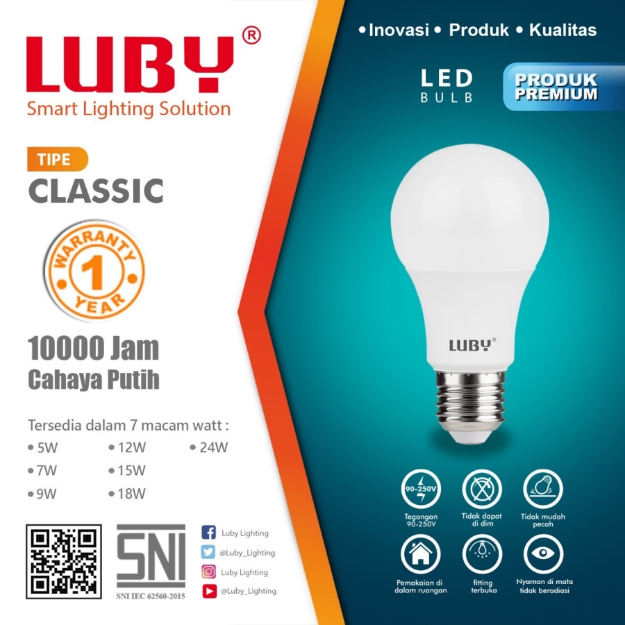Lampu LED LUBY Classic Cahaya Putih 5W, 7W, 9W, 12W, 15W, 18W dan 24W