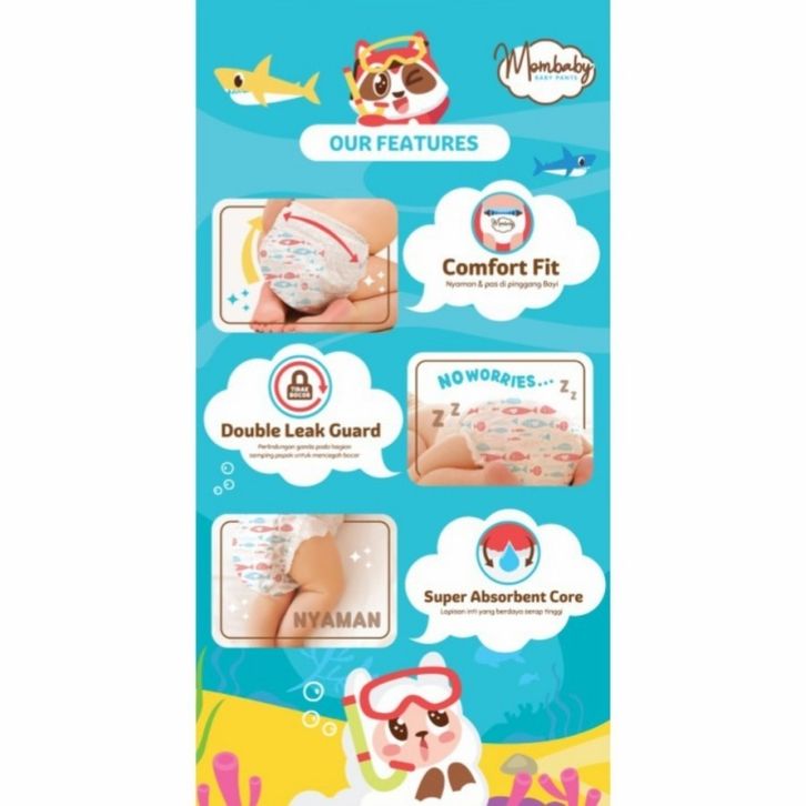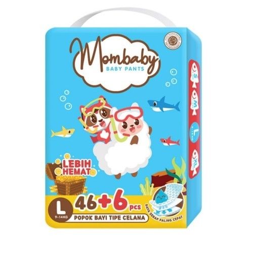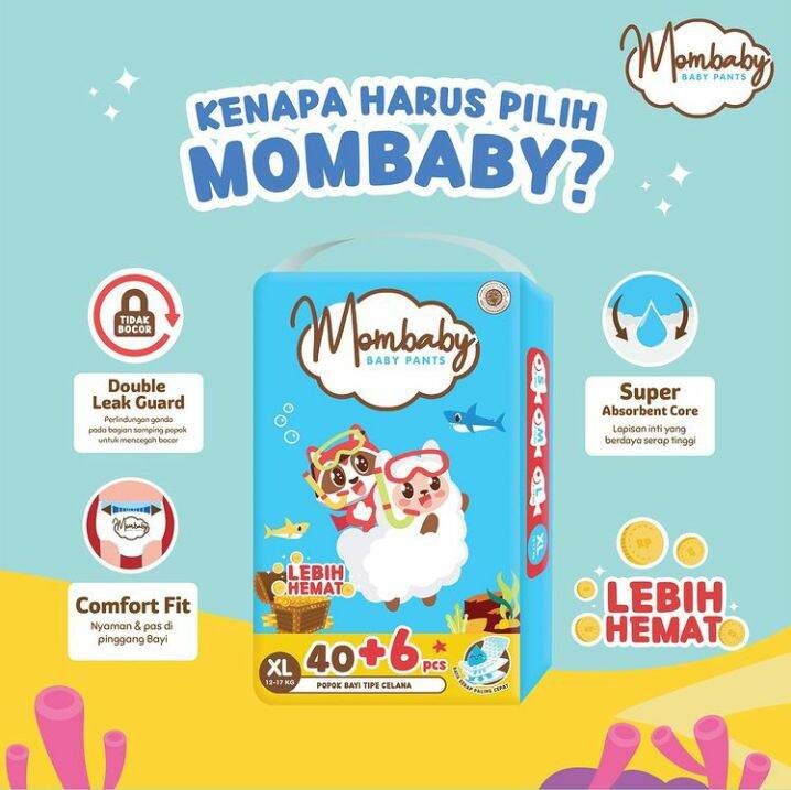 PAMPERS / DIAPERS MURAH / POPOK BAYI / POPOK MURAH / Mombaby Mega Pack Pants S58+6/ M54+6/ L42+6/ XL40+6