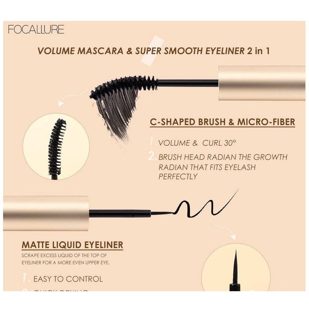 FREE ONGKIR / FOCALLURE 2 In 1 Waterproof Maskara & Eyeliner | Mascara & Eyelash Primer FA 160 | FA160