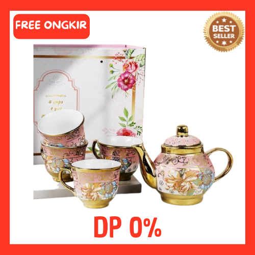 SR - Cangkir Teko Keramik Set 4 Cups 1 Pot European Style - B140