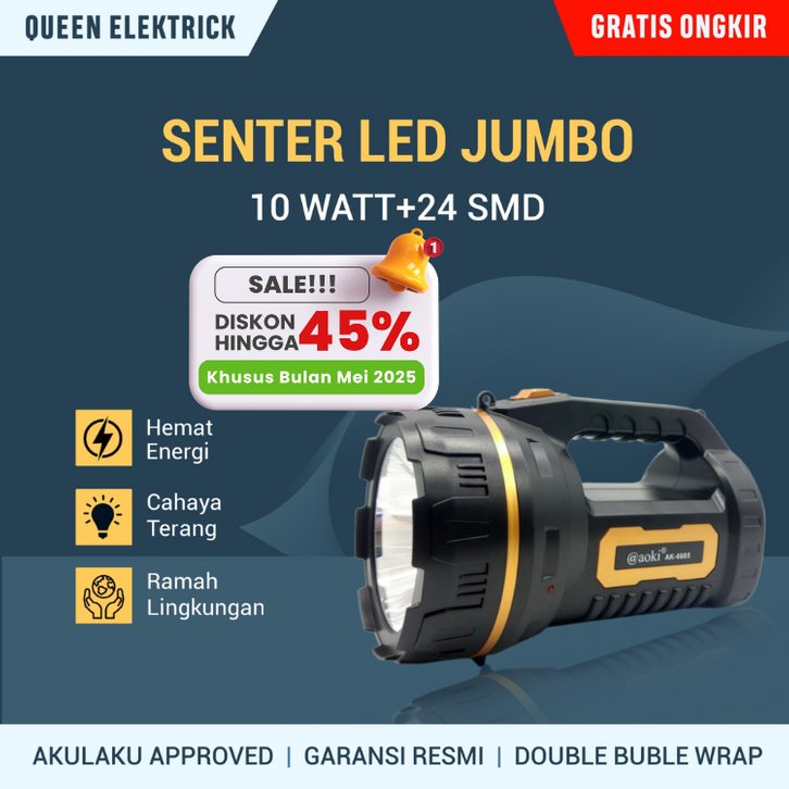 Senter Led Jumbo Dilengkapi Lampu Belajar Baterai Cas Ulang Lampu Senter Multifungsi dan awet Terang Hemat Energi