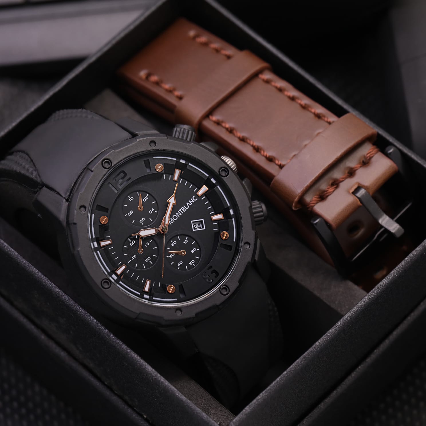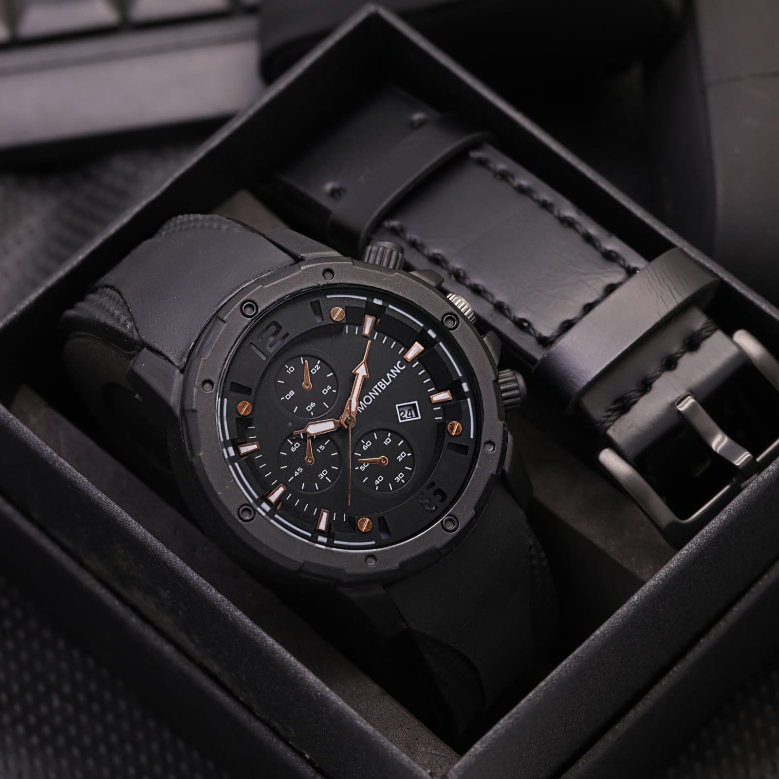 Best Seller - Jam Tangan Pria Sport Montblanc M6856TL Tanggal Aktif Tali Rubber Free Box + Kulit & Baterai