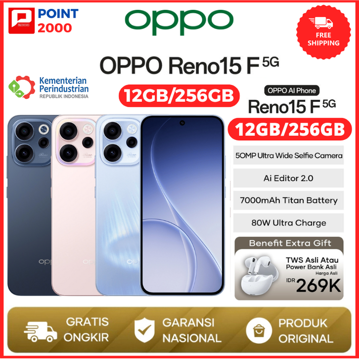 (Best Seller) OPPO Reno 15F 5G 12/256GB ( +12GB EXTENDED RAM ) Garansi Resmi OPPO Reno 15 F