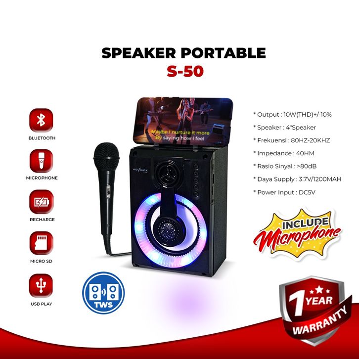 Advance S50 Speaker 5 Inch Sudah Bluetooth Gratis Michrophone Bisa Karaoke Garansi Resmi 1 Tahun