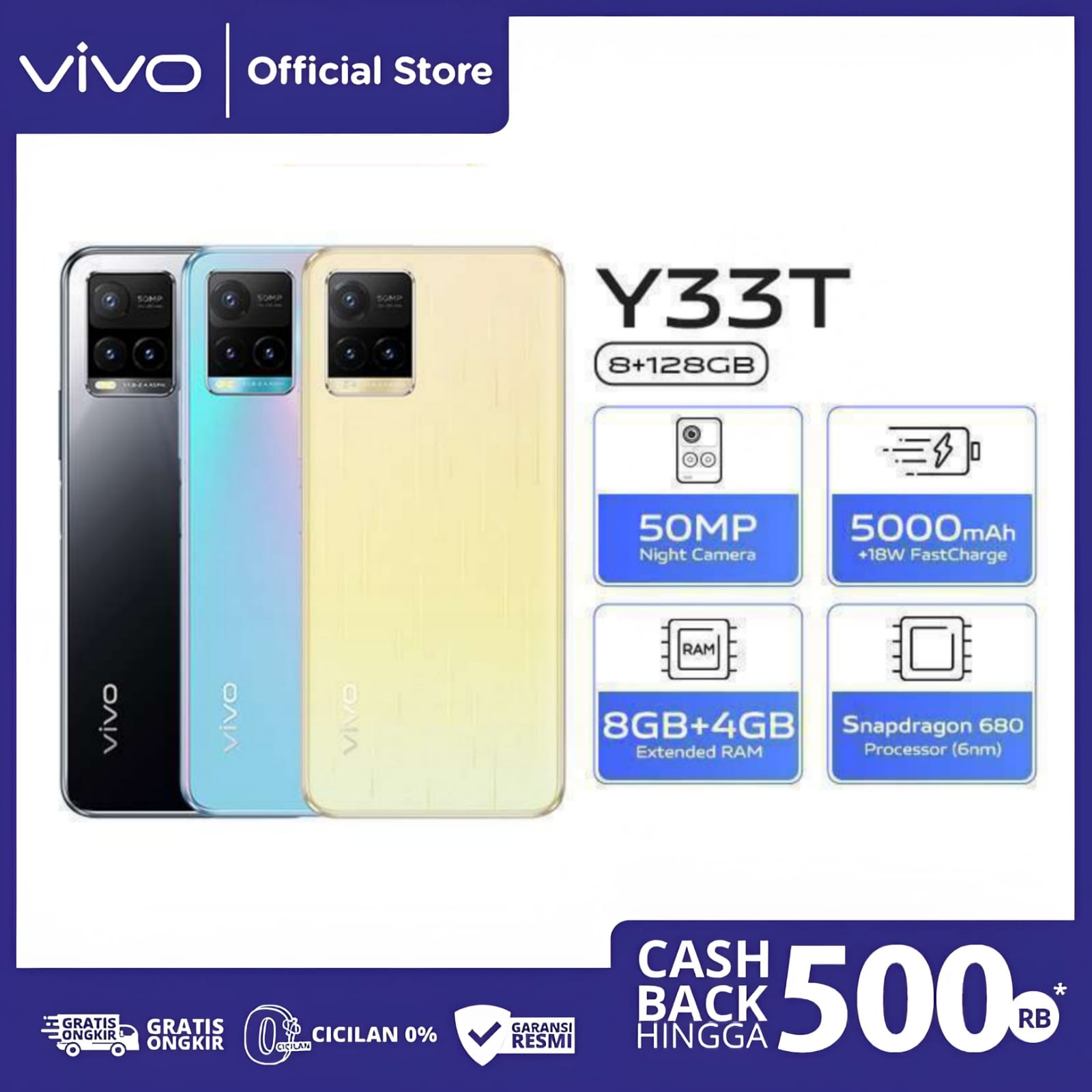 Vivo Y33T 8/128GB Garansi Resm Vivo Y21T Vivo Y03T Vivo Y35 Vivo Y36 Vivo Y27 Vivo Y28 Vivo Y16 Vivo Y18 Vivo Y17s