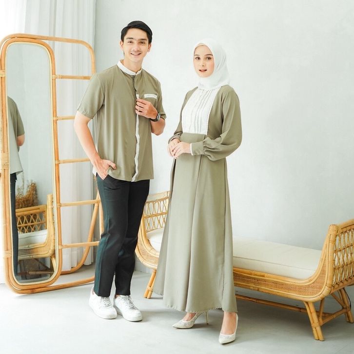 SET SETELAN COUPLE PASANGAN GAMIS DAN KOKO COUPLE POLOS DENGAN AKSEN RUFFLE DI BAGIAN DADA SPESIAL KEKINIAN TERBARU