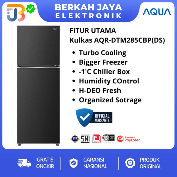 KULKAS AQUA 2 PINTU KAPASITAS 225 LITER AQRD-TM285CBP DS INVERTER JUMBO MURAH TERBARU
